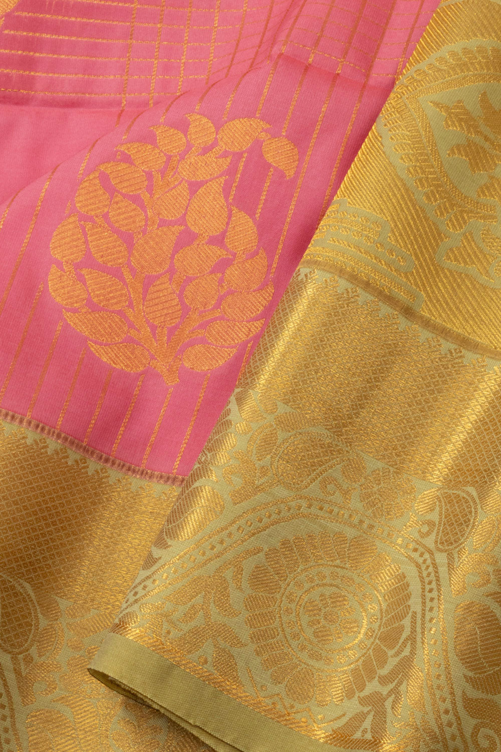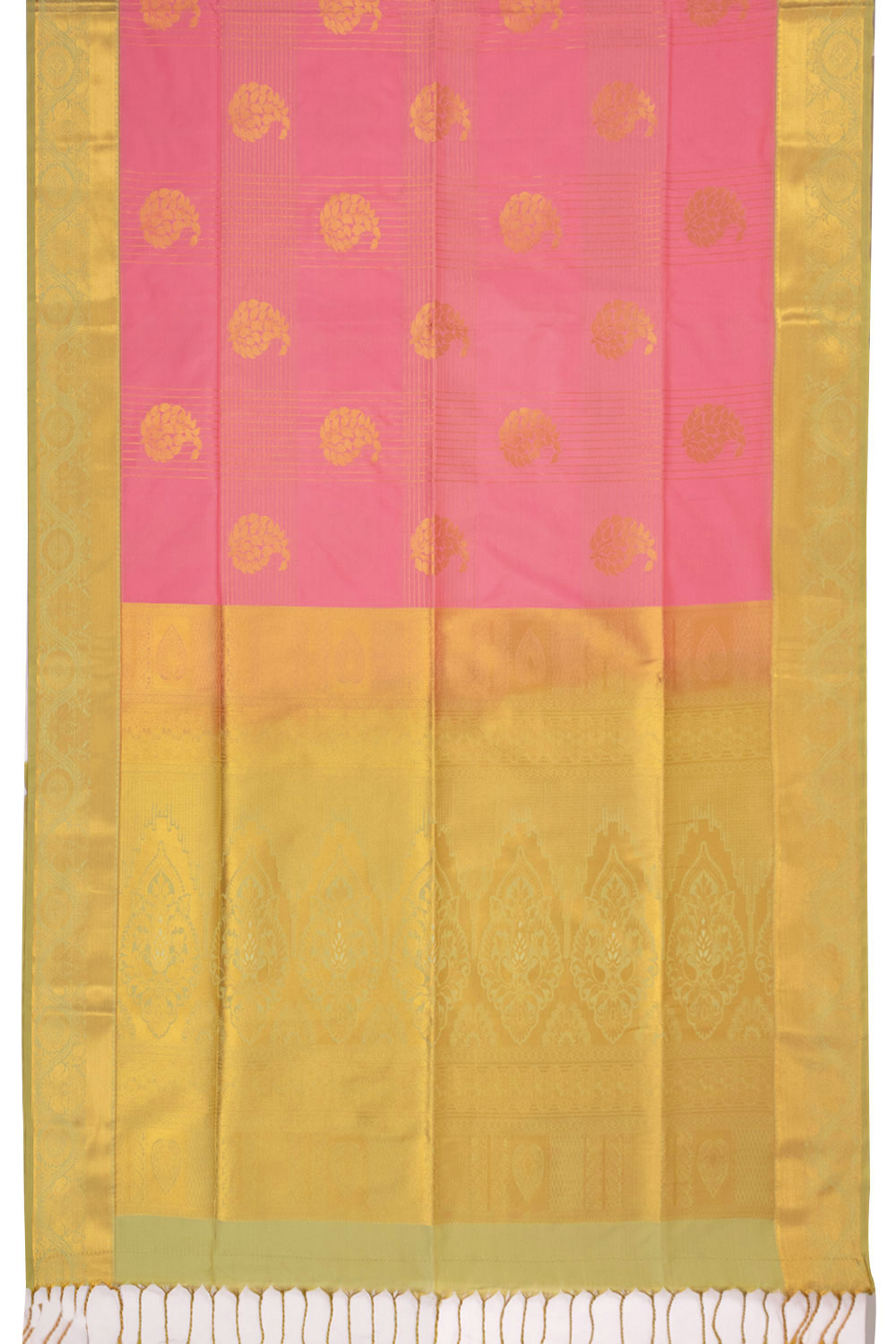 Kanjivaram Blended Soft Silk Saree in Lotus Pink with Green Contrast Pallu 10073853