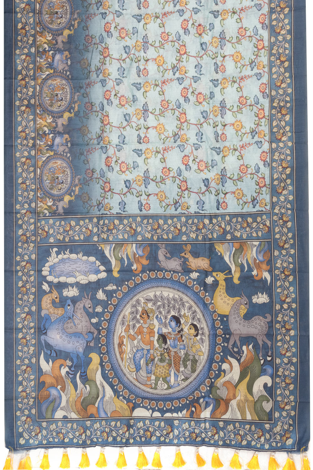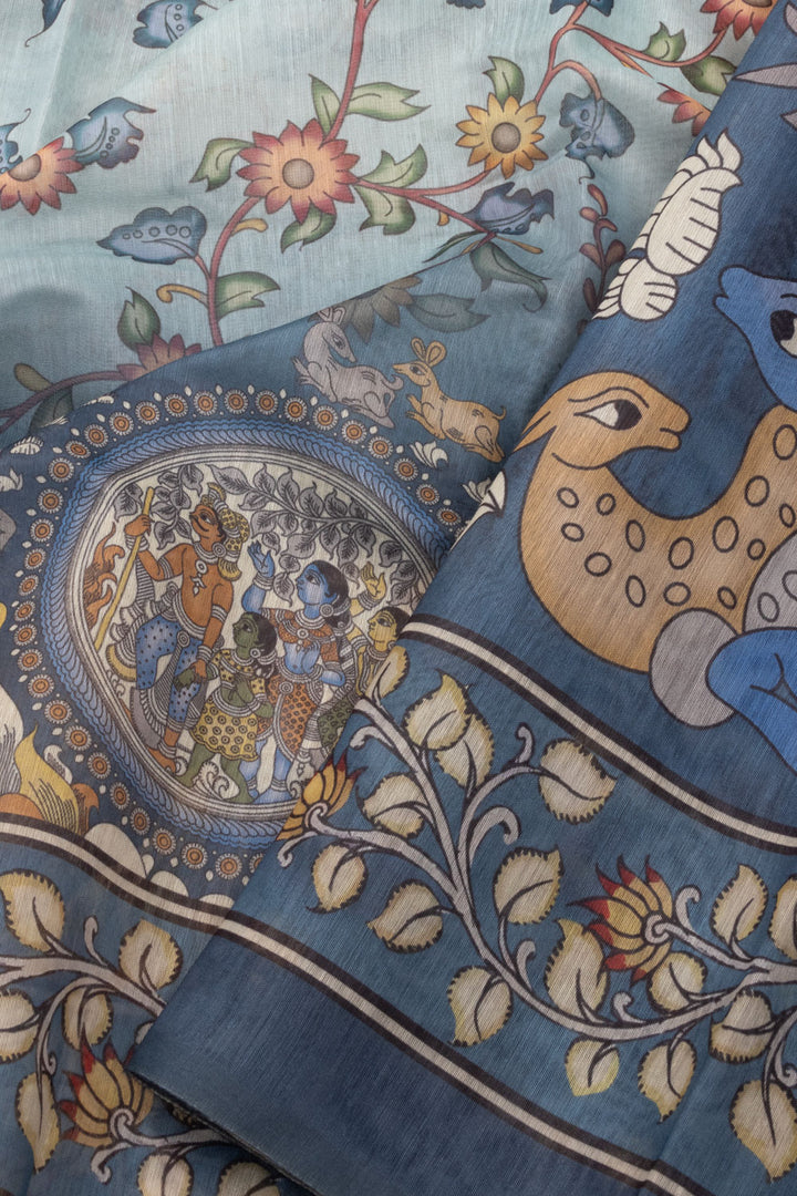 Powder Blue Kalamkari Print Malai Cotton Saree 10071173