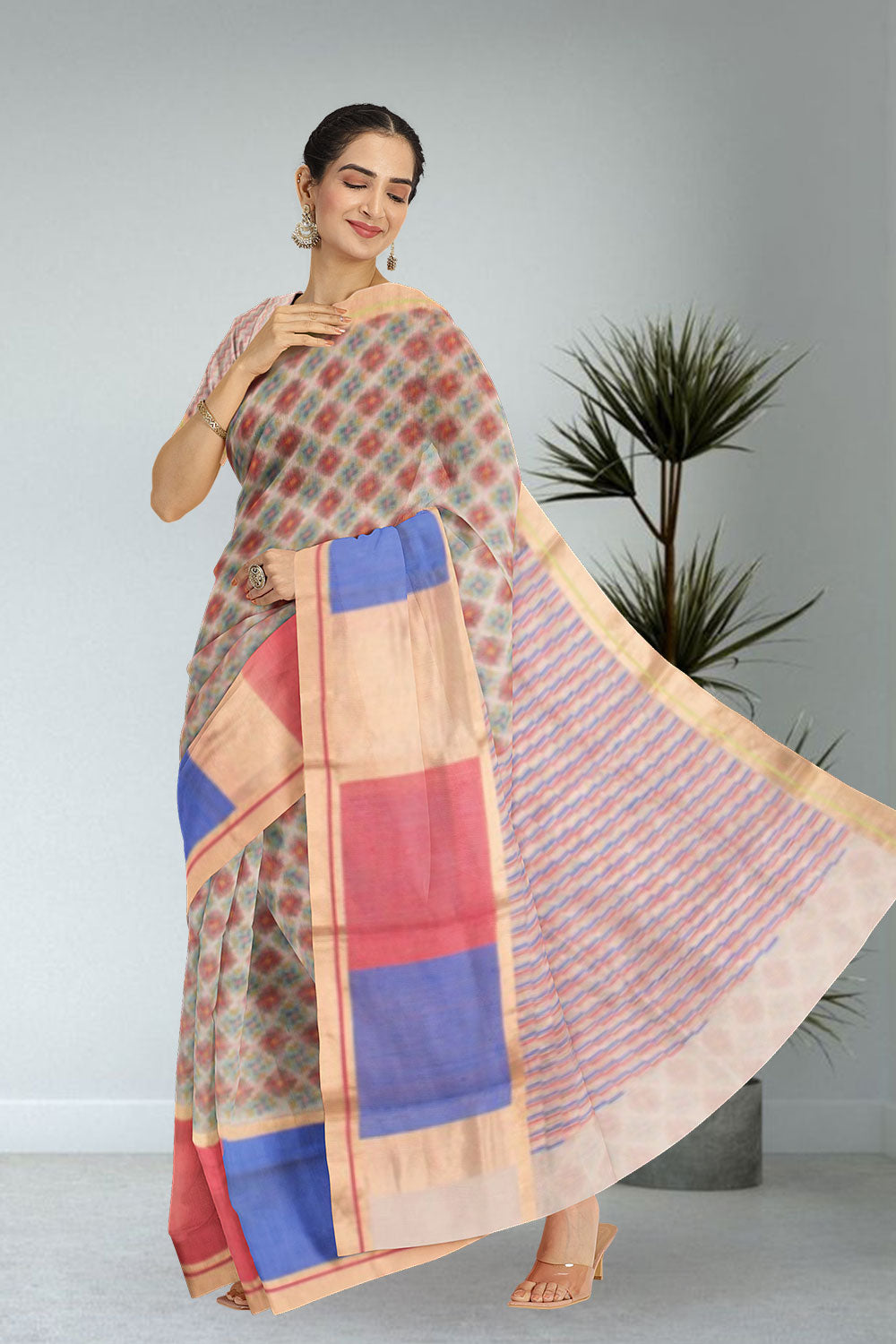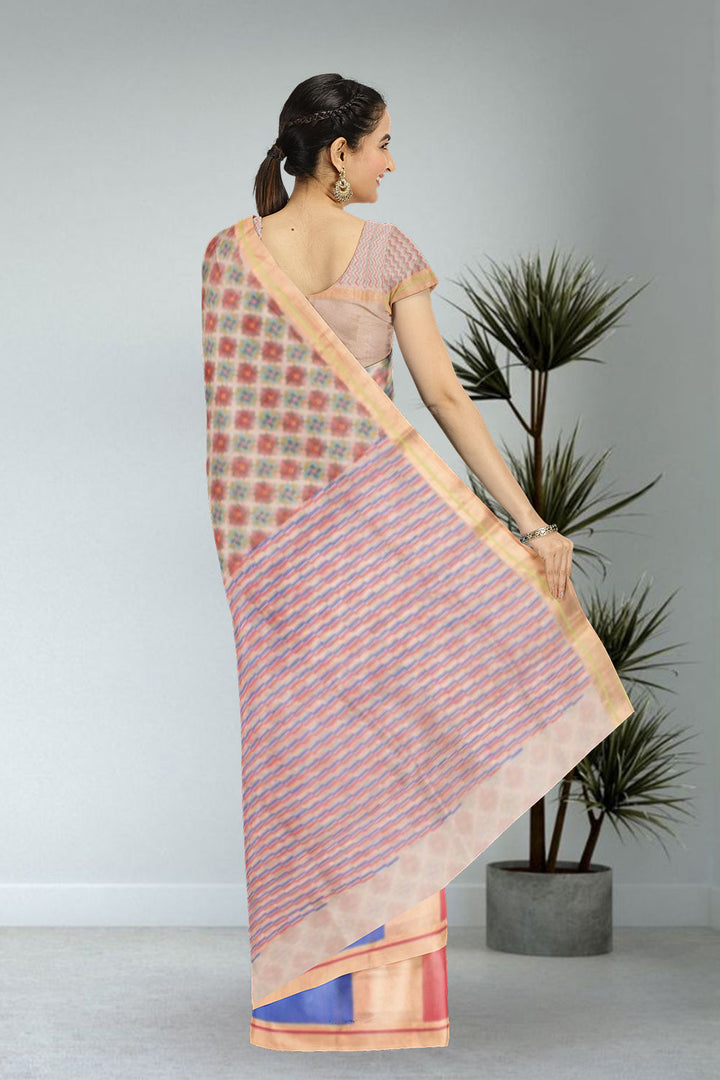 Printed Chanderi Silk Cotton Saree With Geometric Design and Multicolour Border 10050599