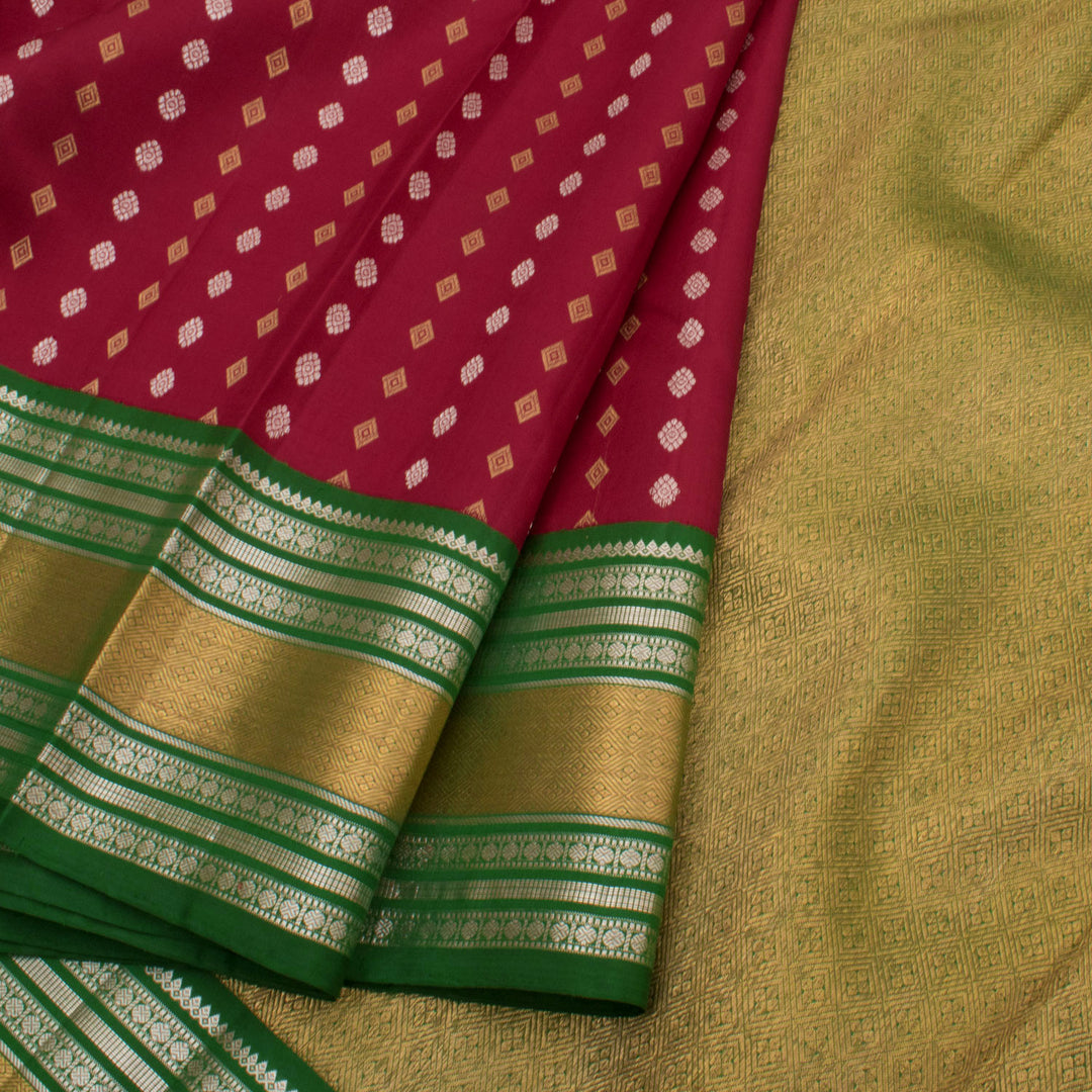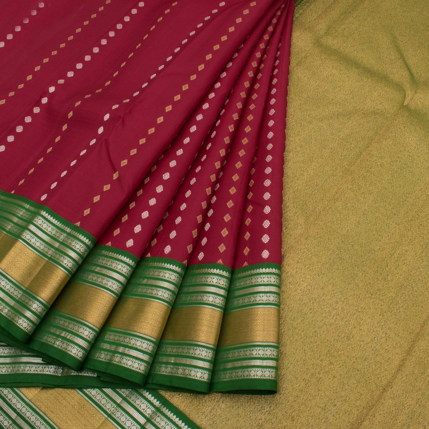 Handloom Pure Zari Bridal Korvai Kanjivaram Silk Saree with Floral Diamond Motifs and Rudhraksham Salangai Border 10055446