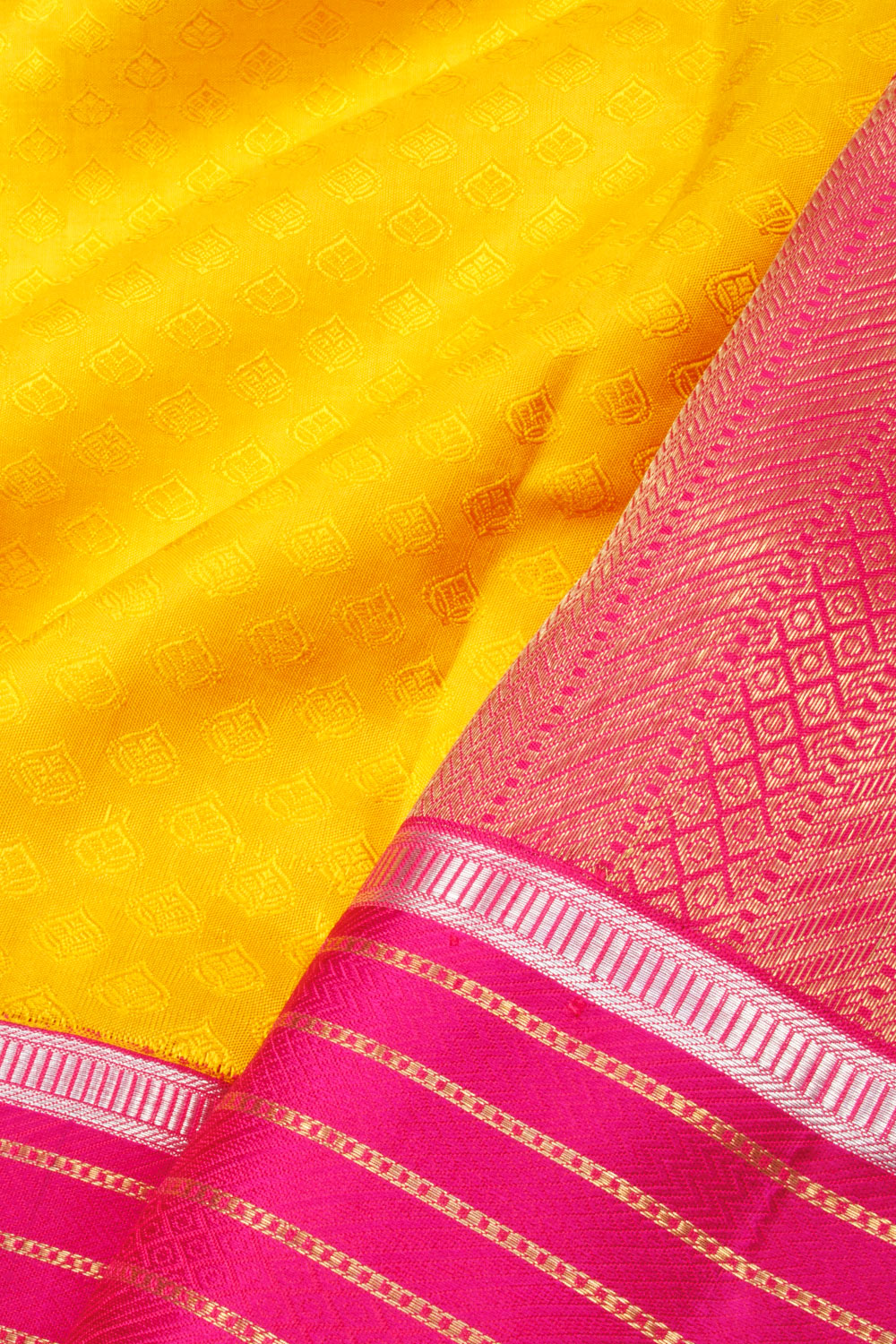 Mango Yellow Pure Zari Korvai Jacquard Kanjivaram Silk Saree 10063402
