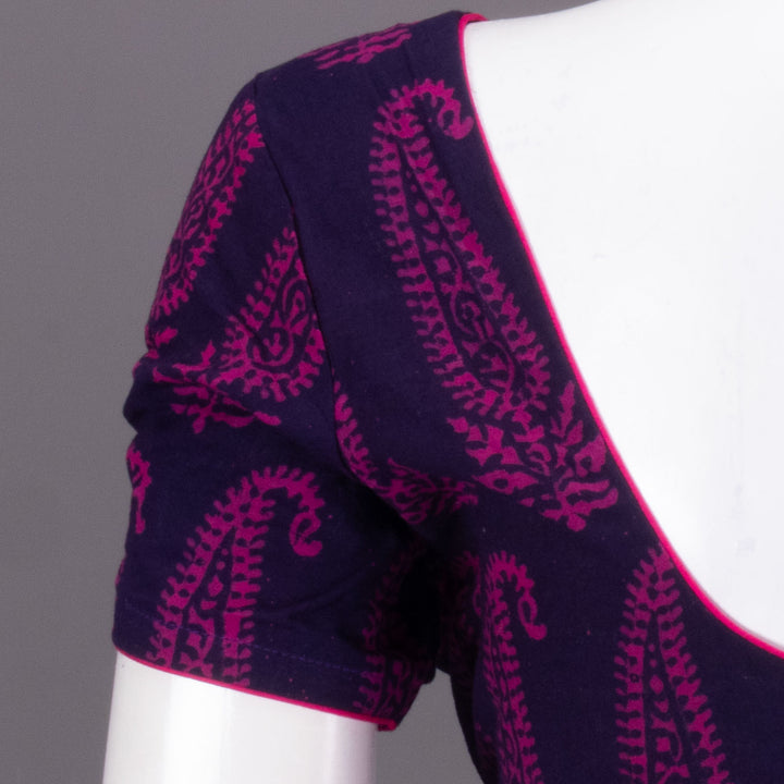 Purple Kutchi Hand Block Printed Cotton Blouse 10073263