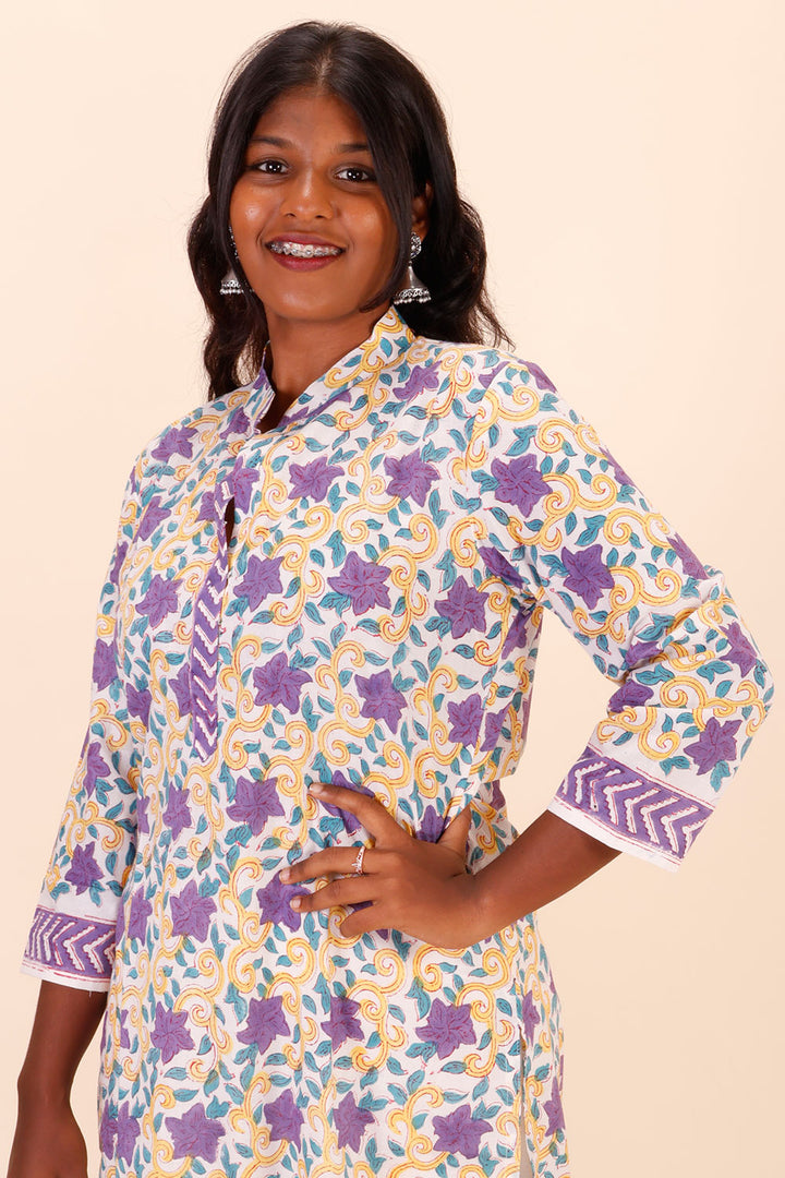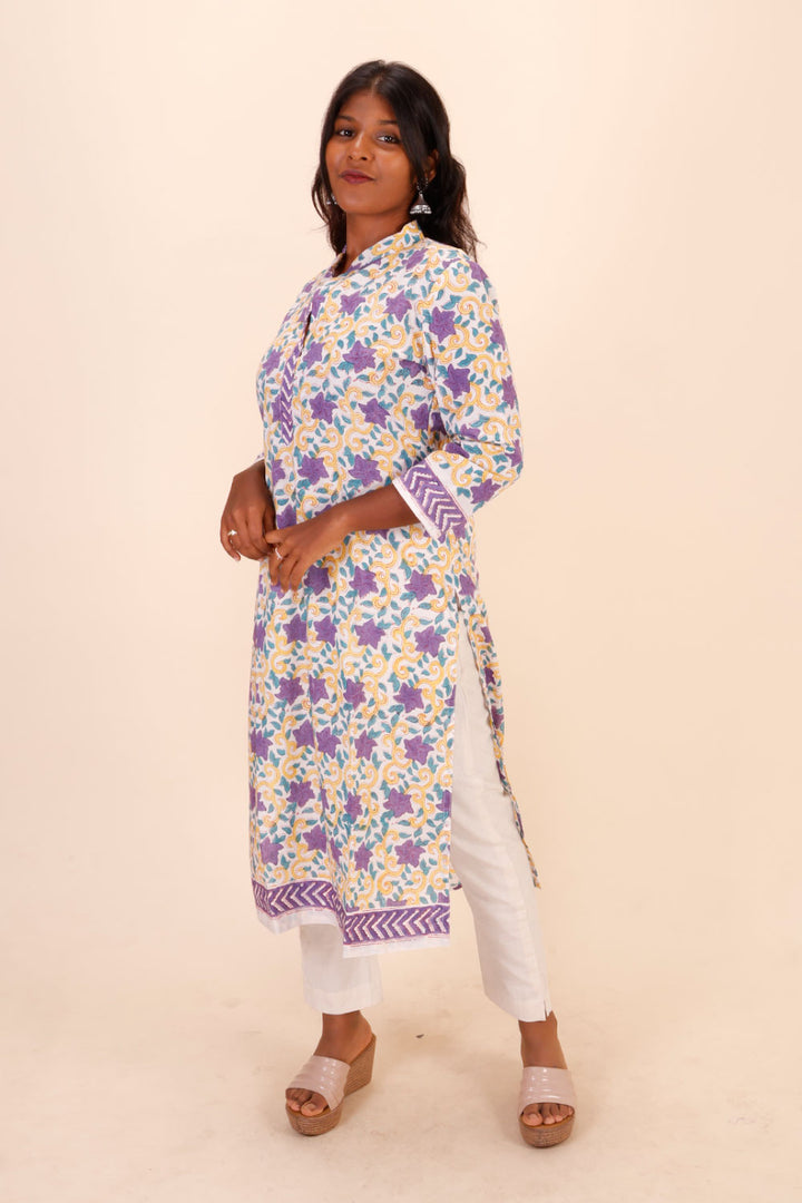 Elevate your everyday style with this White Hand Block Printed Cotton Kurta, crafted for comfort and charm. The breathable cotton fabric keeps you cool, while the intricate hand block print adds a unique, artisanal touch. Perfectly paired with jeans for a casual look or white pants for a crisp, elegant outfit, this kurta effortlessly blends tradition with modern versatility. Make a statement with a piece that celebrates craftsmanship and enhances your wardrobe.