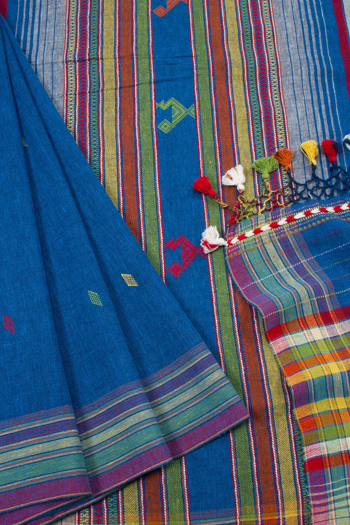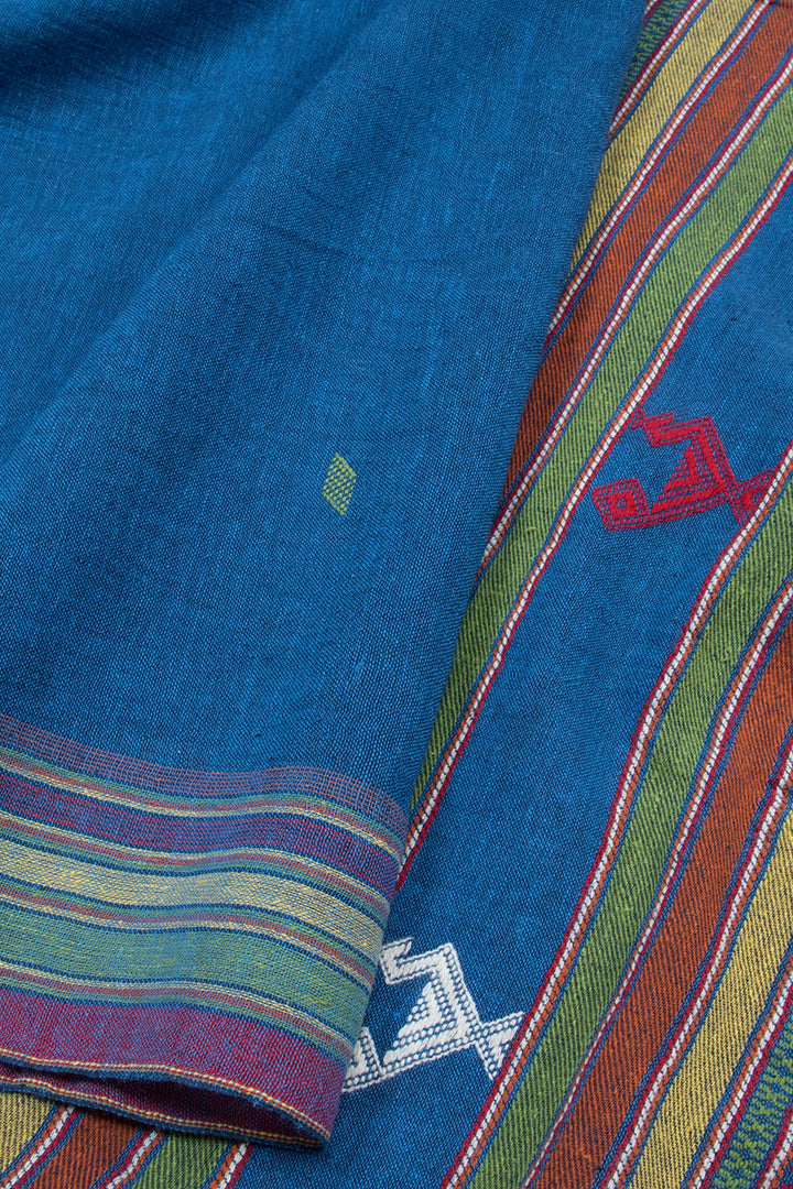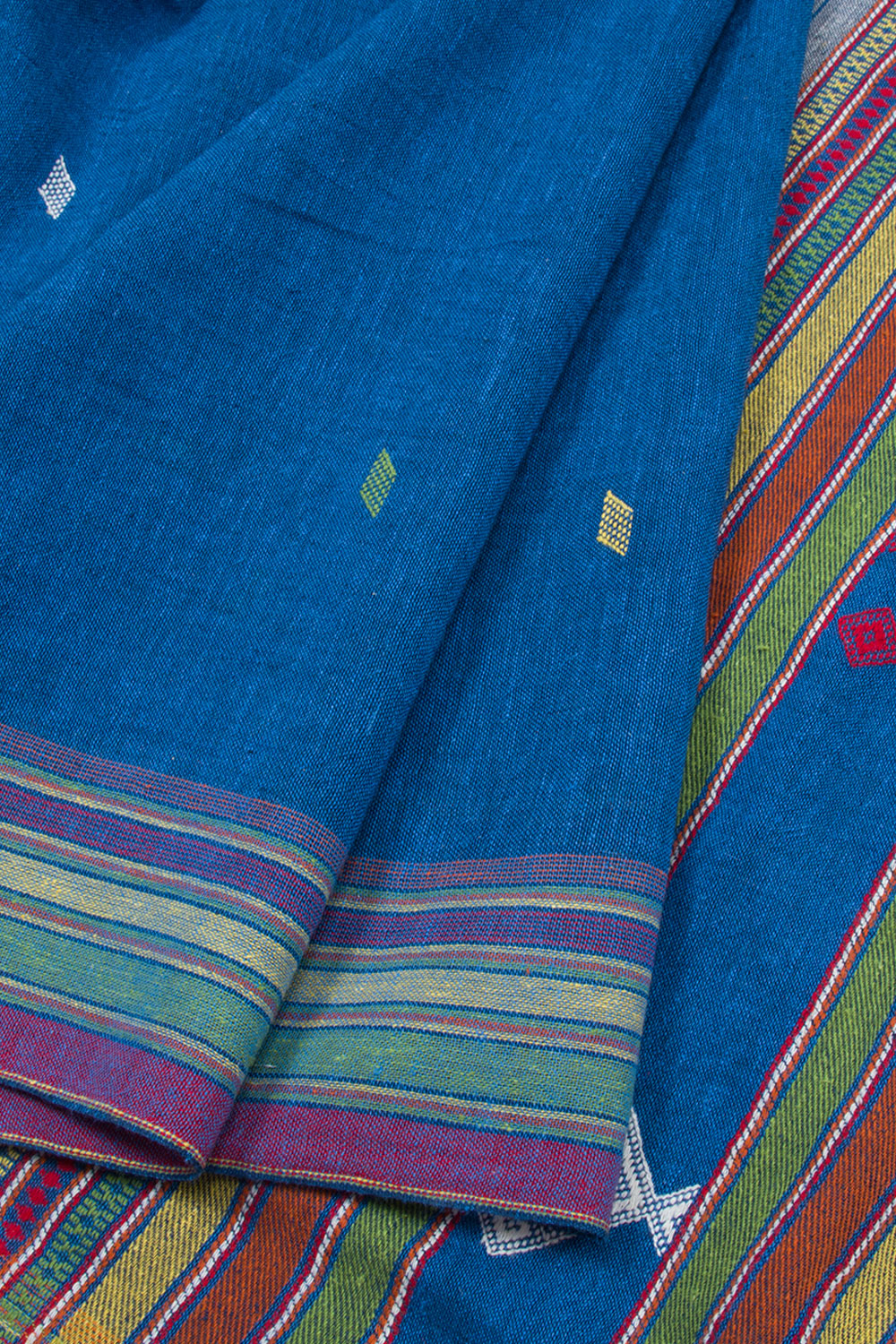 Medium Teal Blue Handloom Bhujodi Kala Cotton Saree 10063047