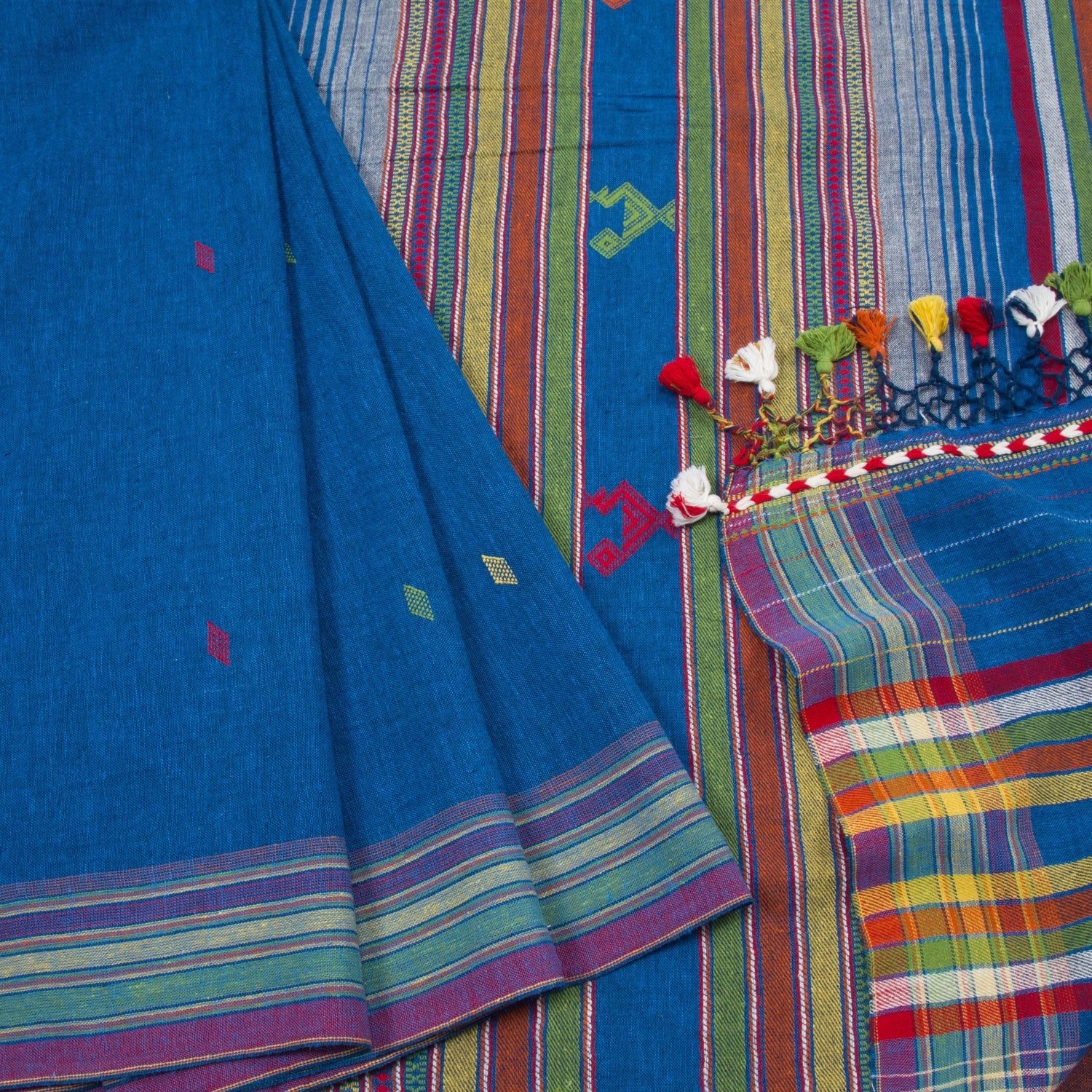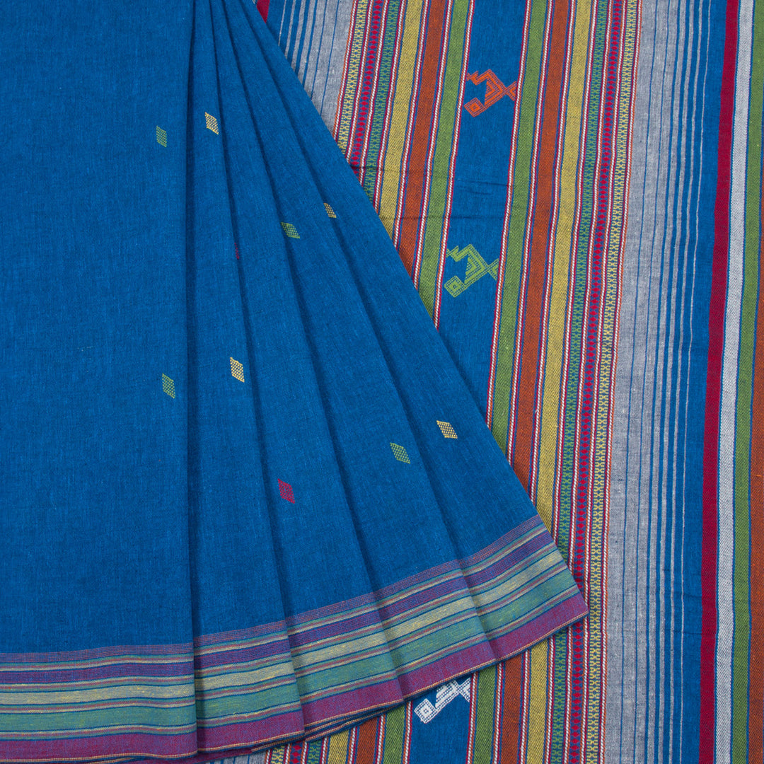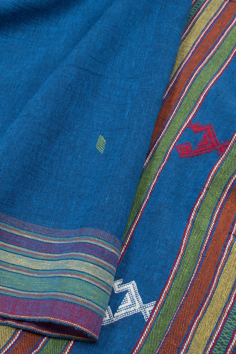 Medium Teal Blue Handloom Bhujodi Kala Cotton Saree 10063047
