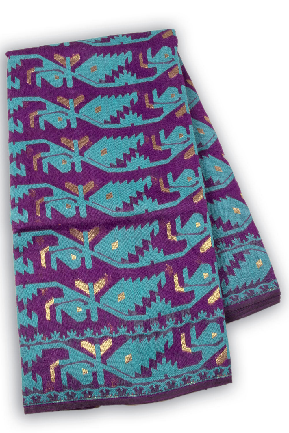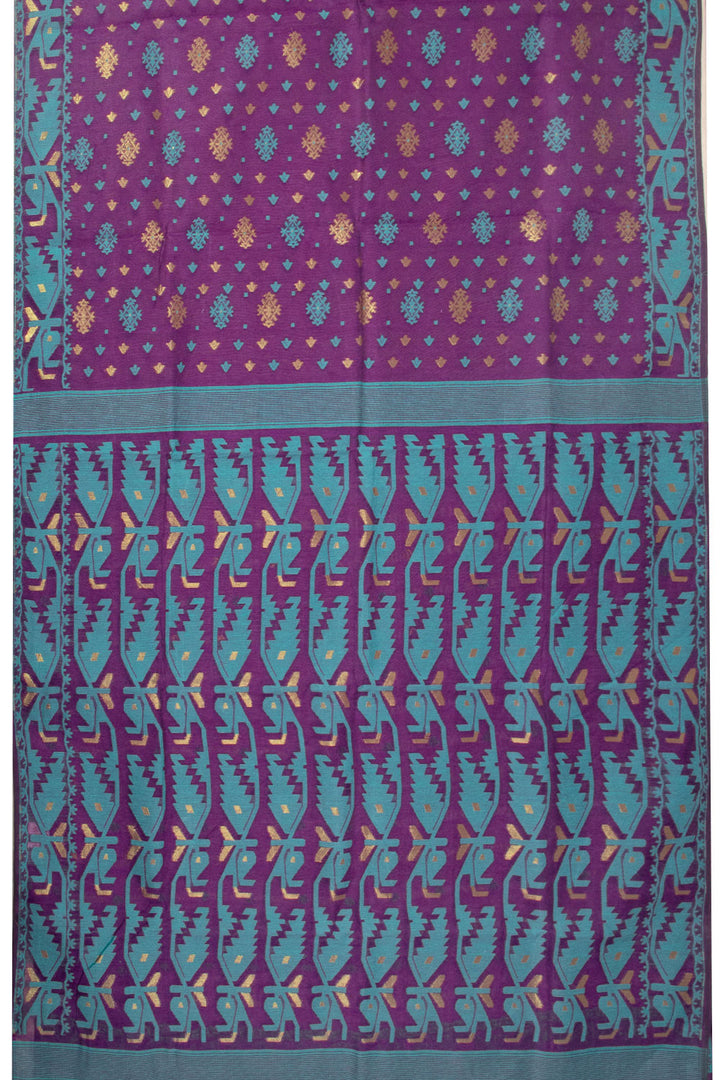 Purple Handloom Jamdani Style Cotton Saree with Blouse 10074230