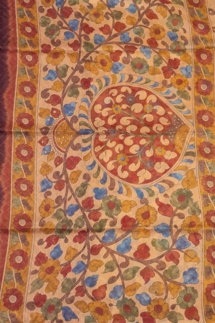 Kalamkari is a traditional Indian art form known for its detailed pen-drawn or block-printed motifs that depict ancient folklore, floral patterns, and artistic storytelling. In these sarees, the Kalamkari technique is digitally printed to capture the intricacy and vibrance of original hand-painted designs while ensuring durability and precision.