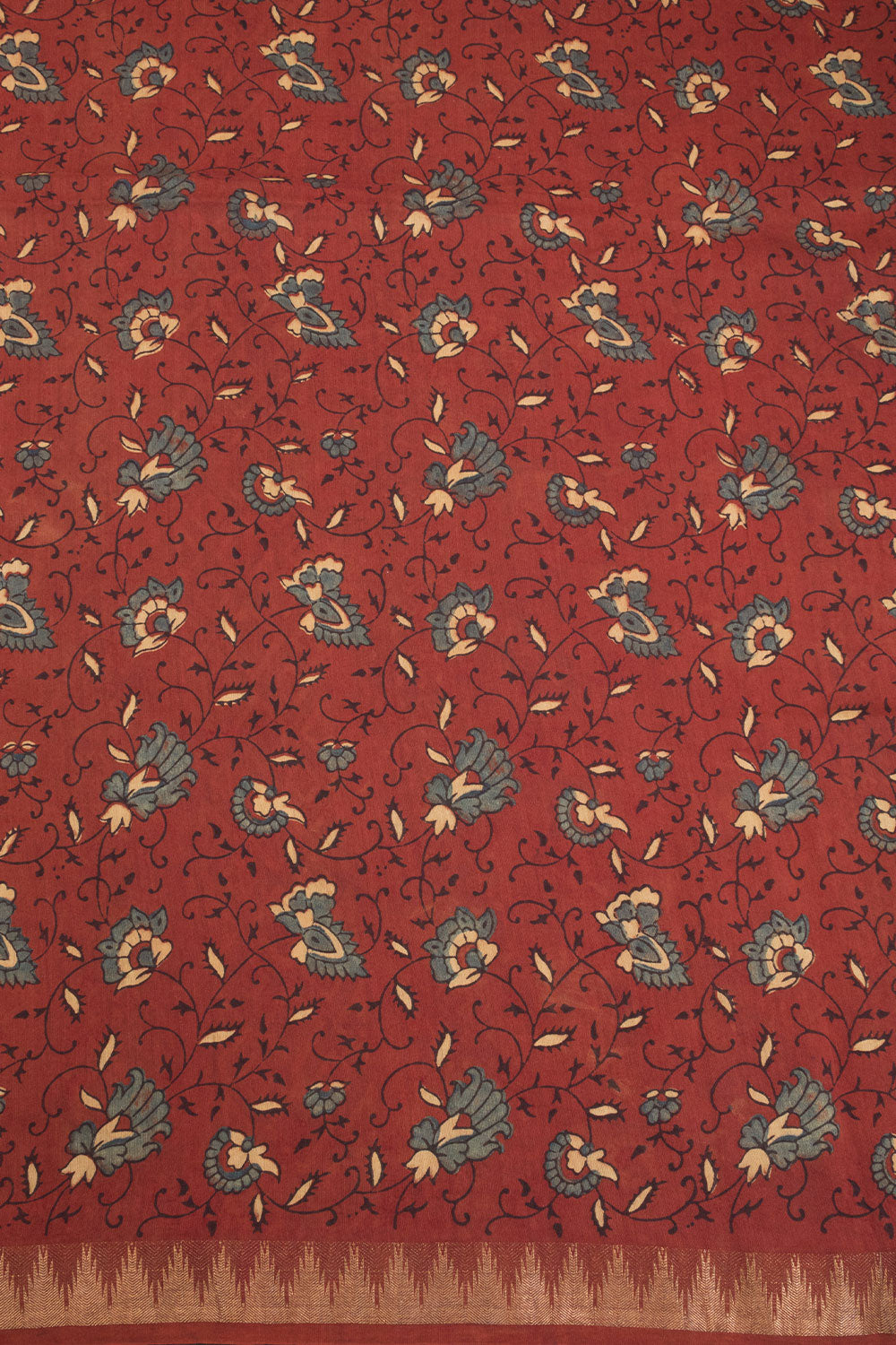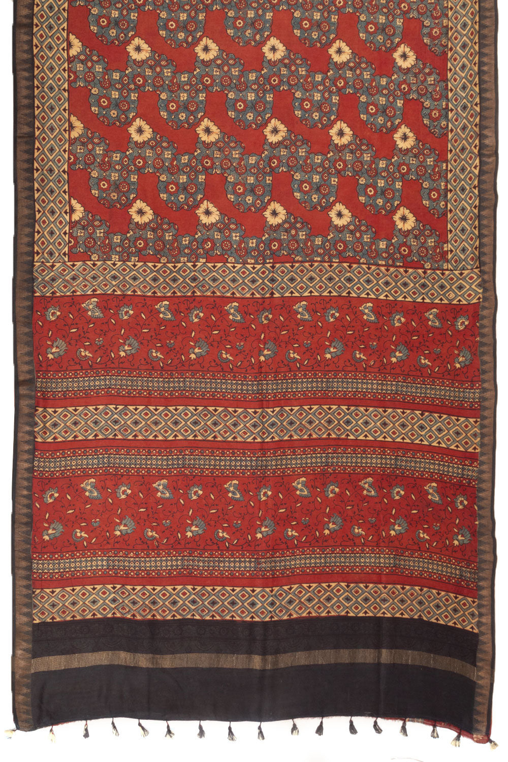 Red Ajrakh Printed Silk Cotton Saree 10072181
