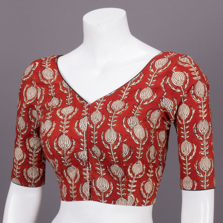Red Hand Block Printed Cotton Blouse 10073314