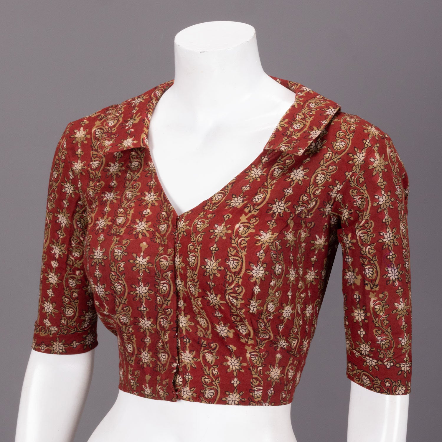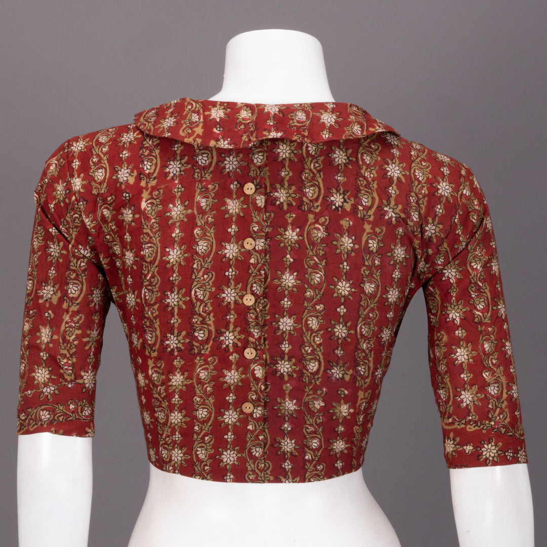 Red Hand Block Vanaspathi Printed Cotton Blouse 10074482