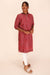 Red Kantha Embroidered Tussar Silk Kurta 10064090