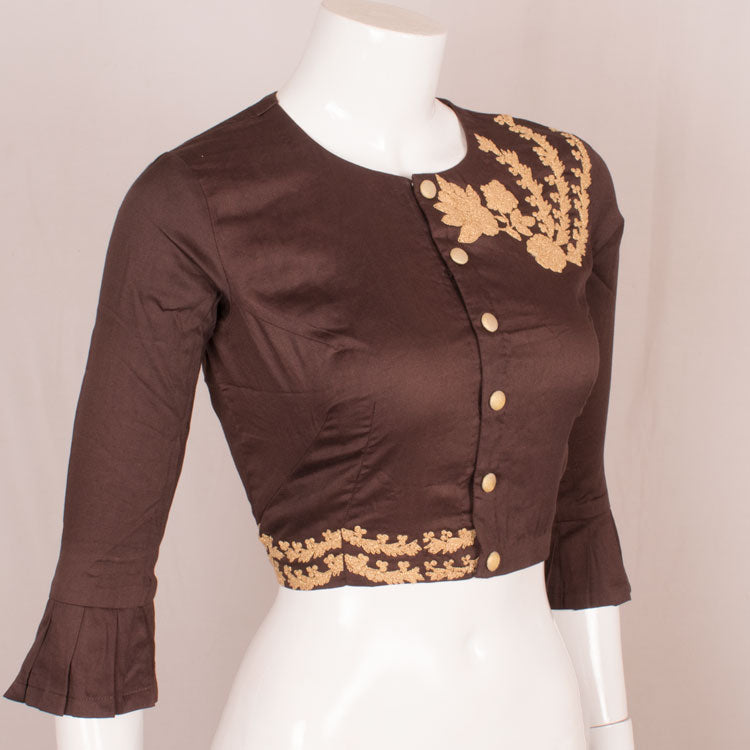 Brown Resham Dori Embroidered Silk Cotton Blouse 10048906