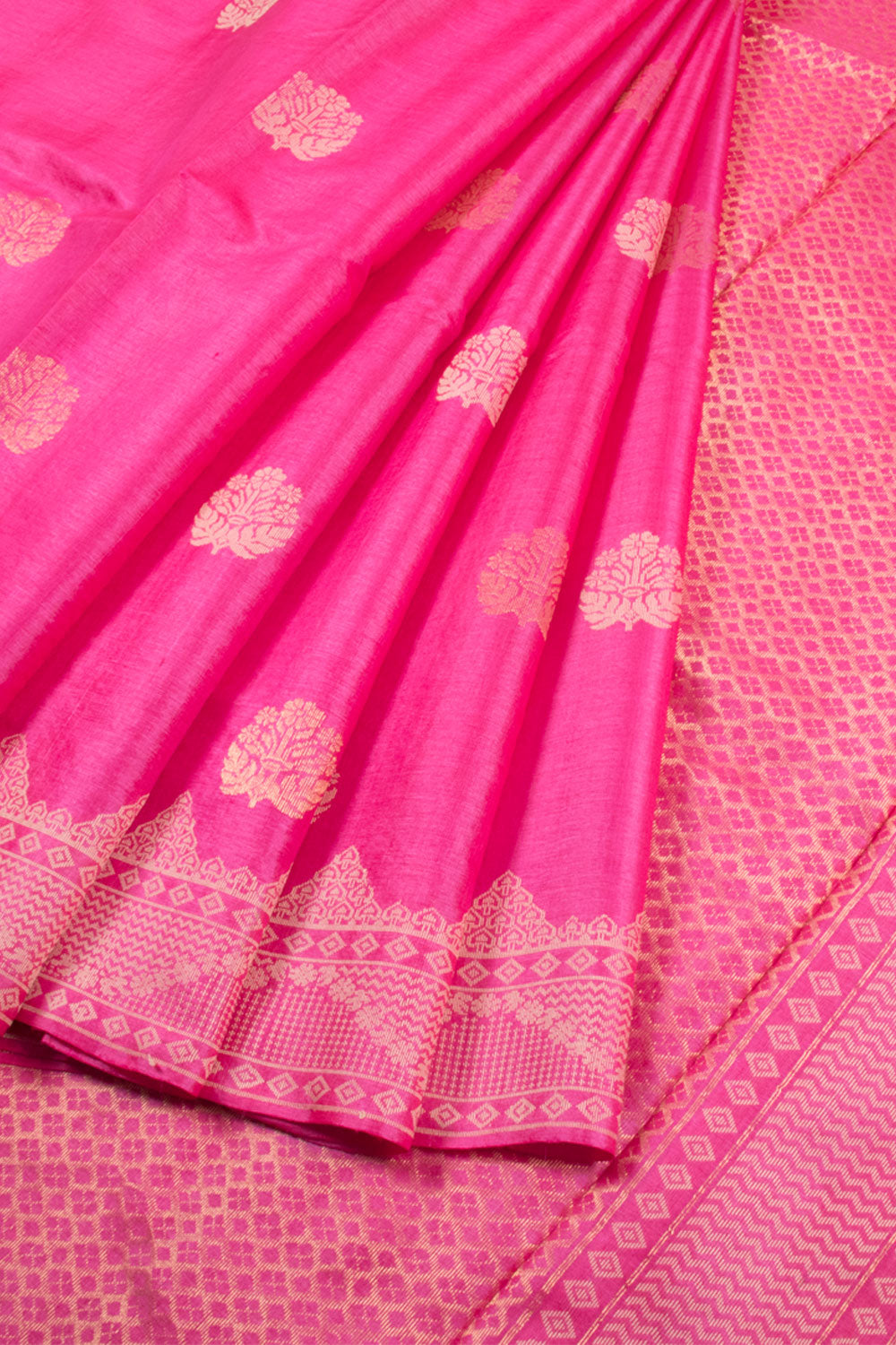 Rose Pink Chhattisgarh Tussar Silk Saree 10059712