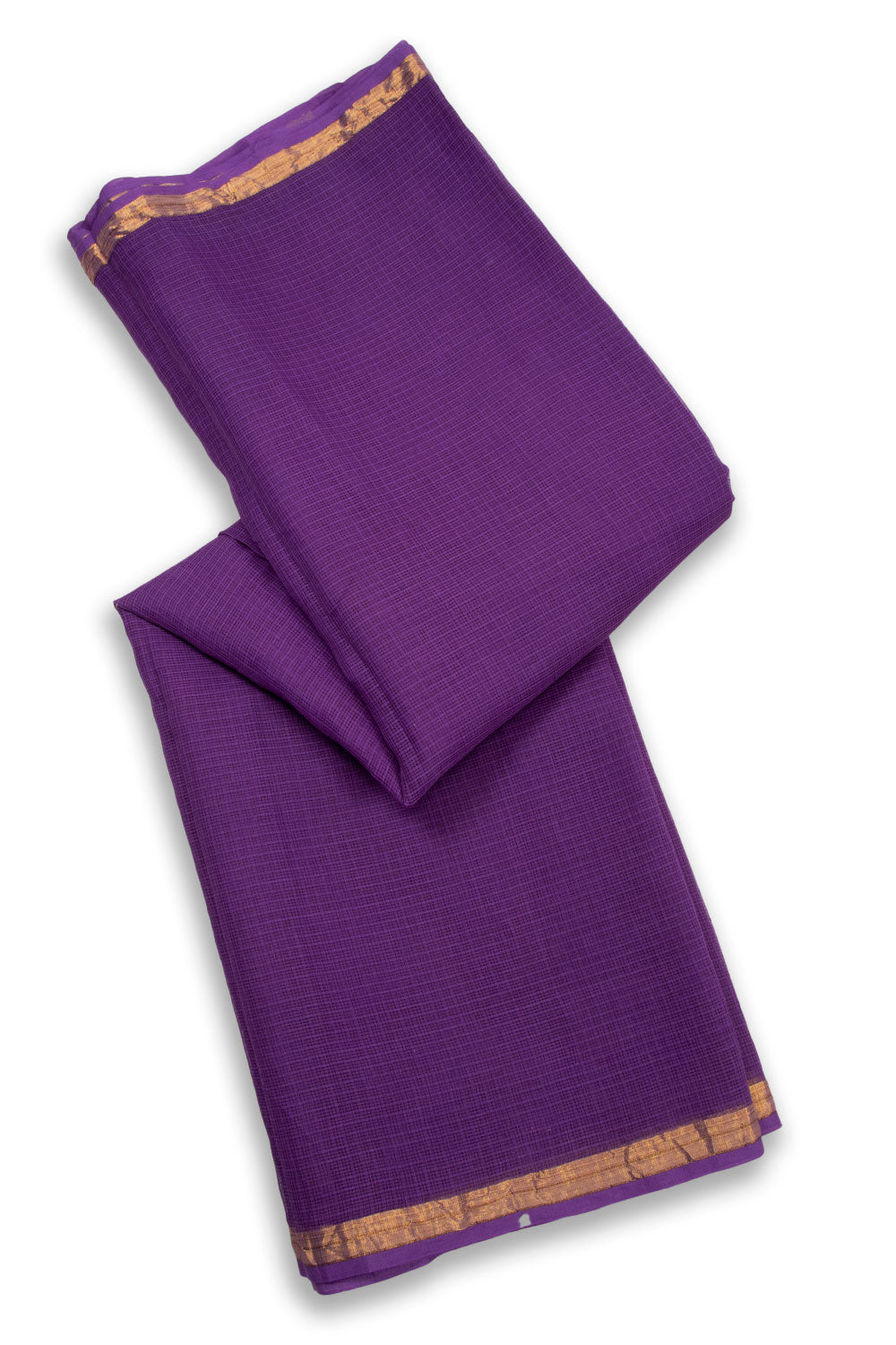 Royal Purple Solid Style Kota Cotton Saree with Contrast Blouse 10074189
