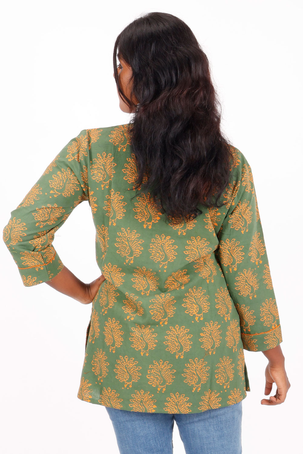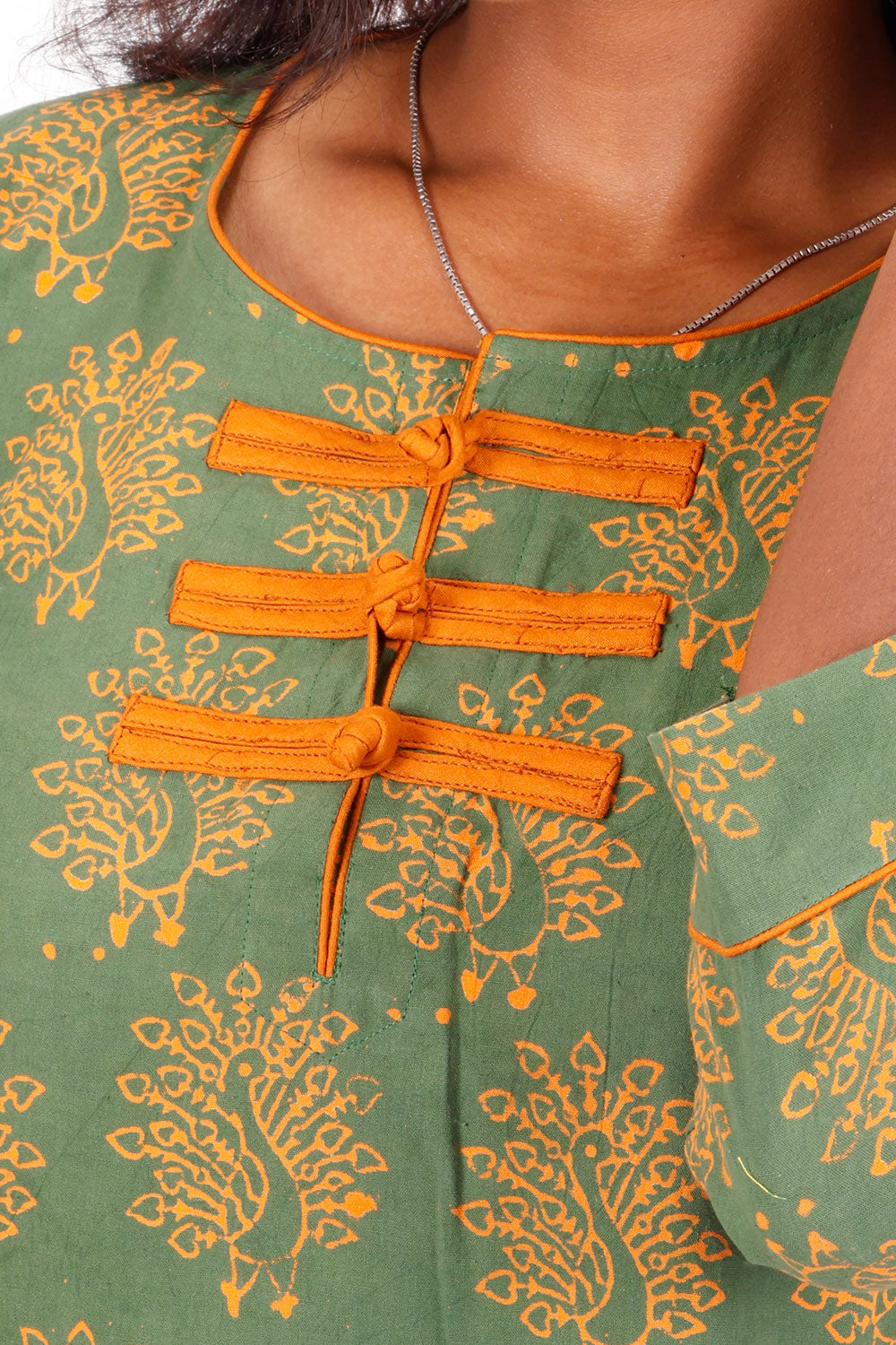 Experience vibrant elegance with this Green Hand Block Printed Cotton Kurti. Crafted from breathable cotton, it offers comfort and style for everyday wear. The intricate hand block prints add a unique, artisanal touch, making it perfect for casual outings or festive occasions. Embrace tradition with a modern flair and elevate your wardrobe effortlessly.