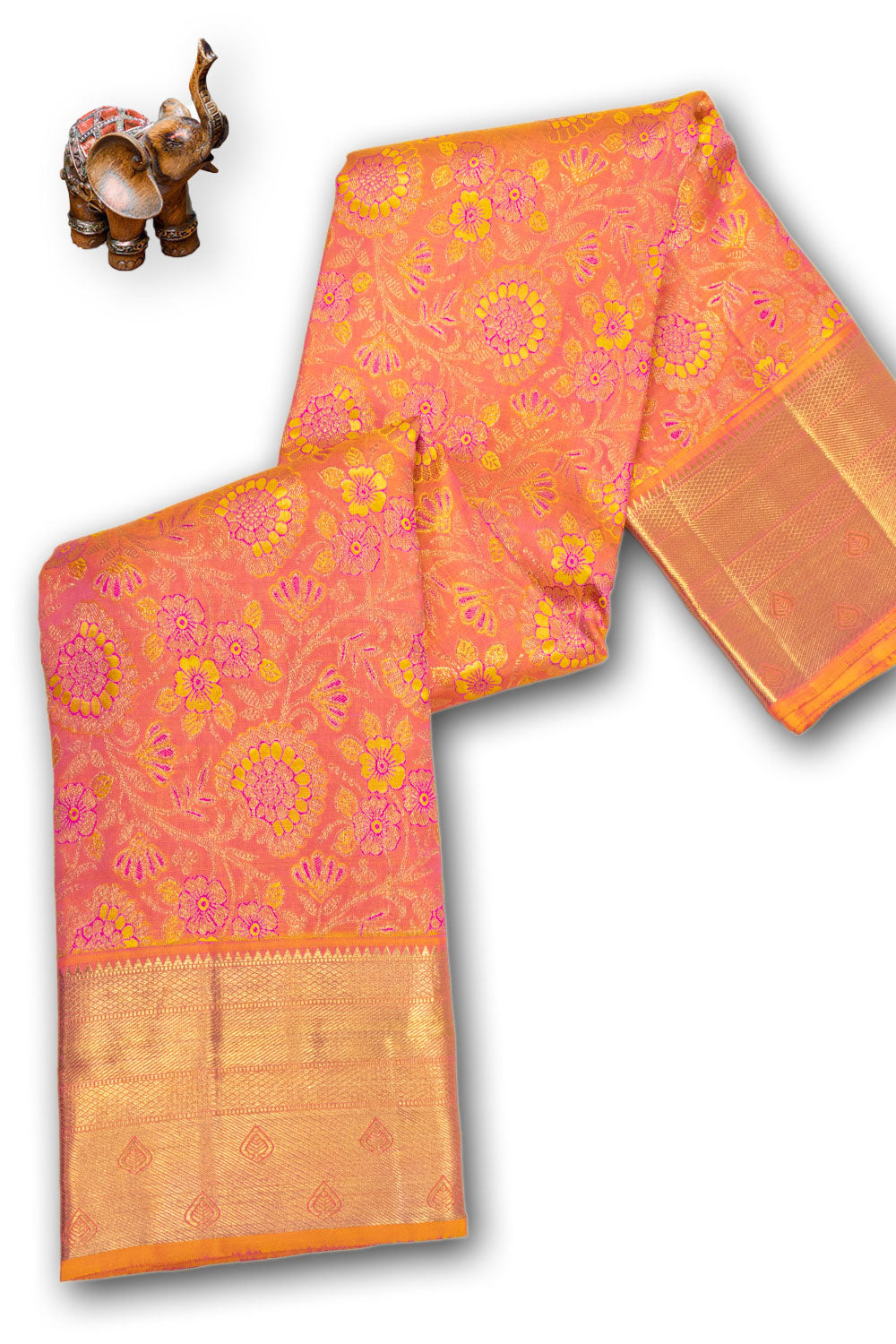 Salmon Orange Monotone Bridal Kanjivaram Tissue Silk Saree 10074746