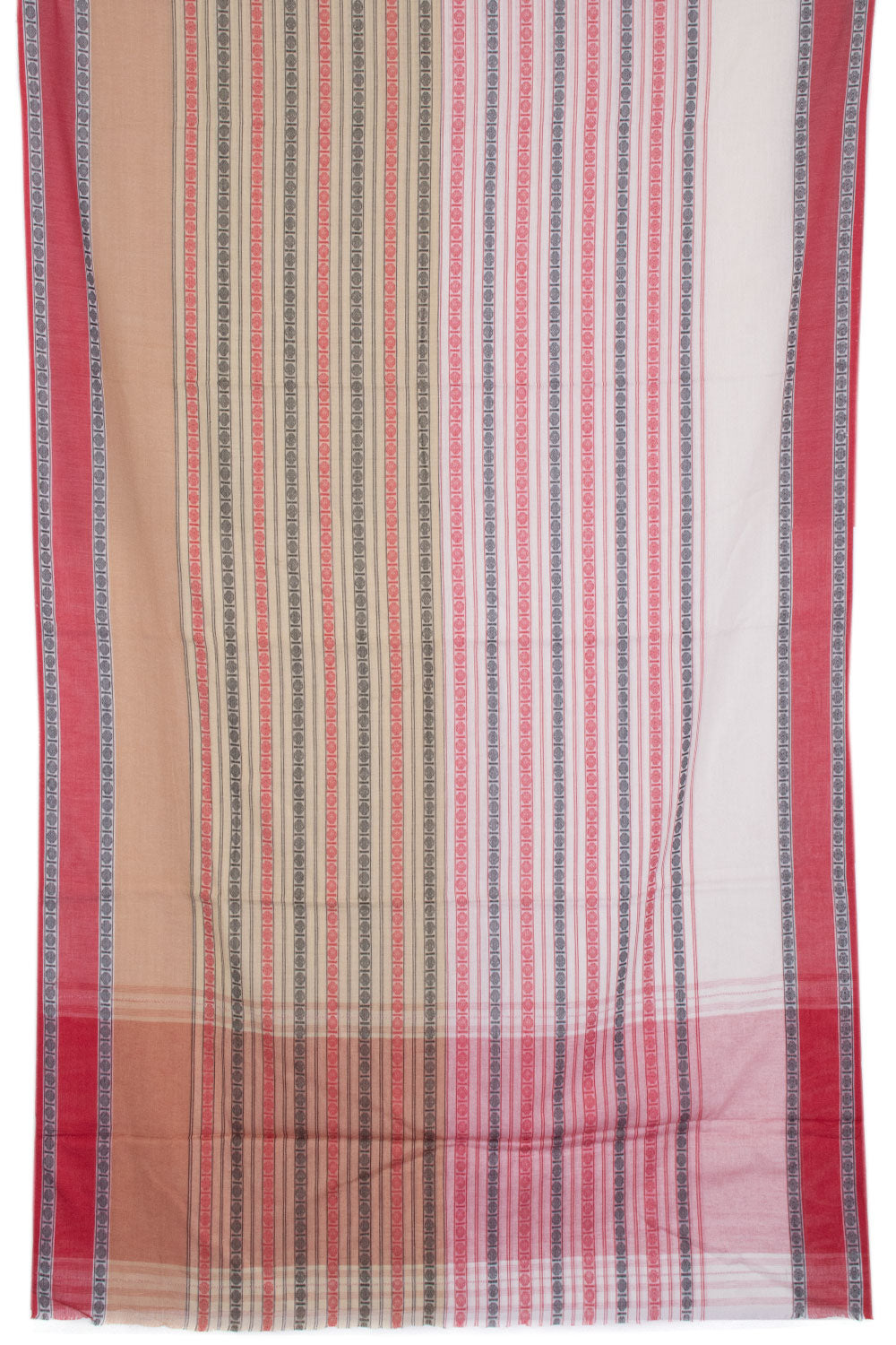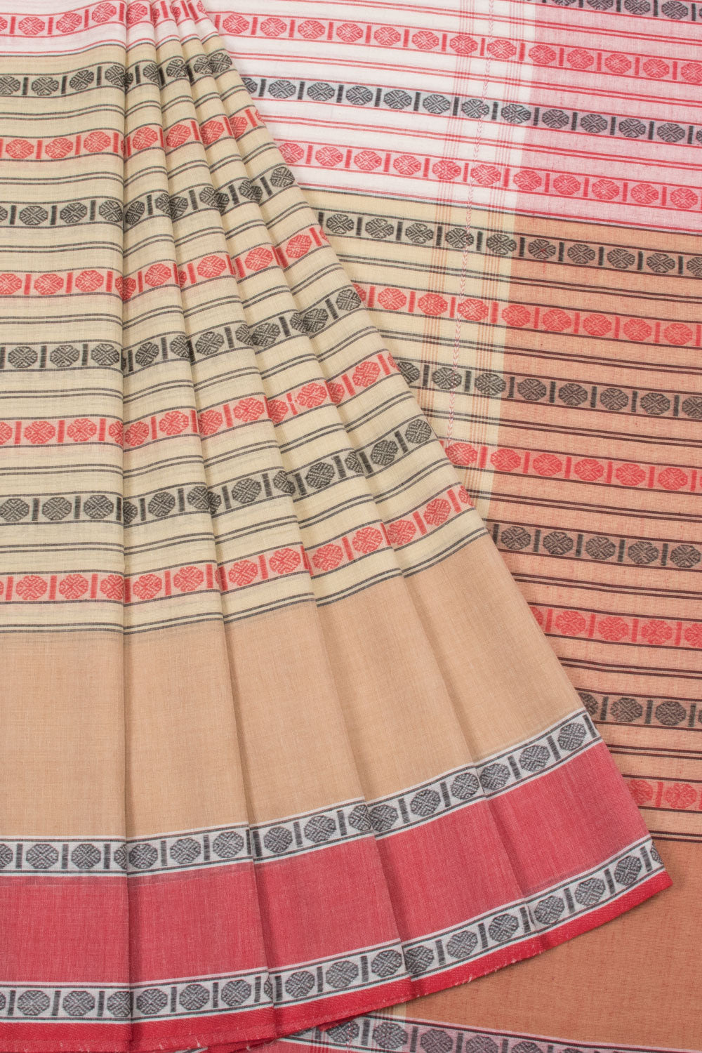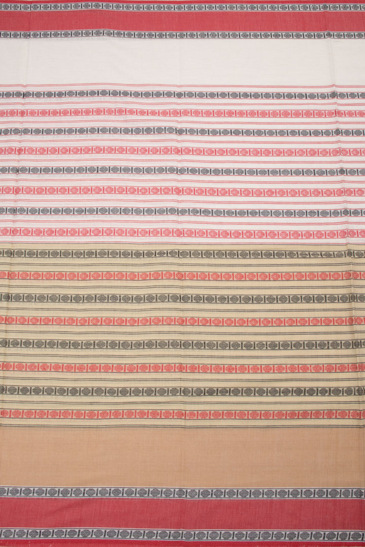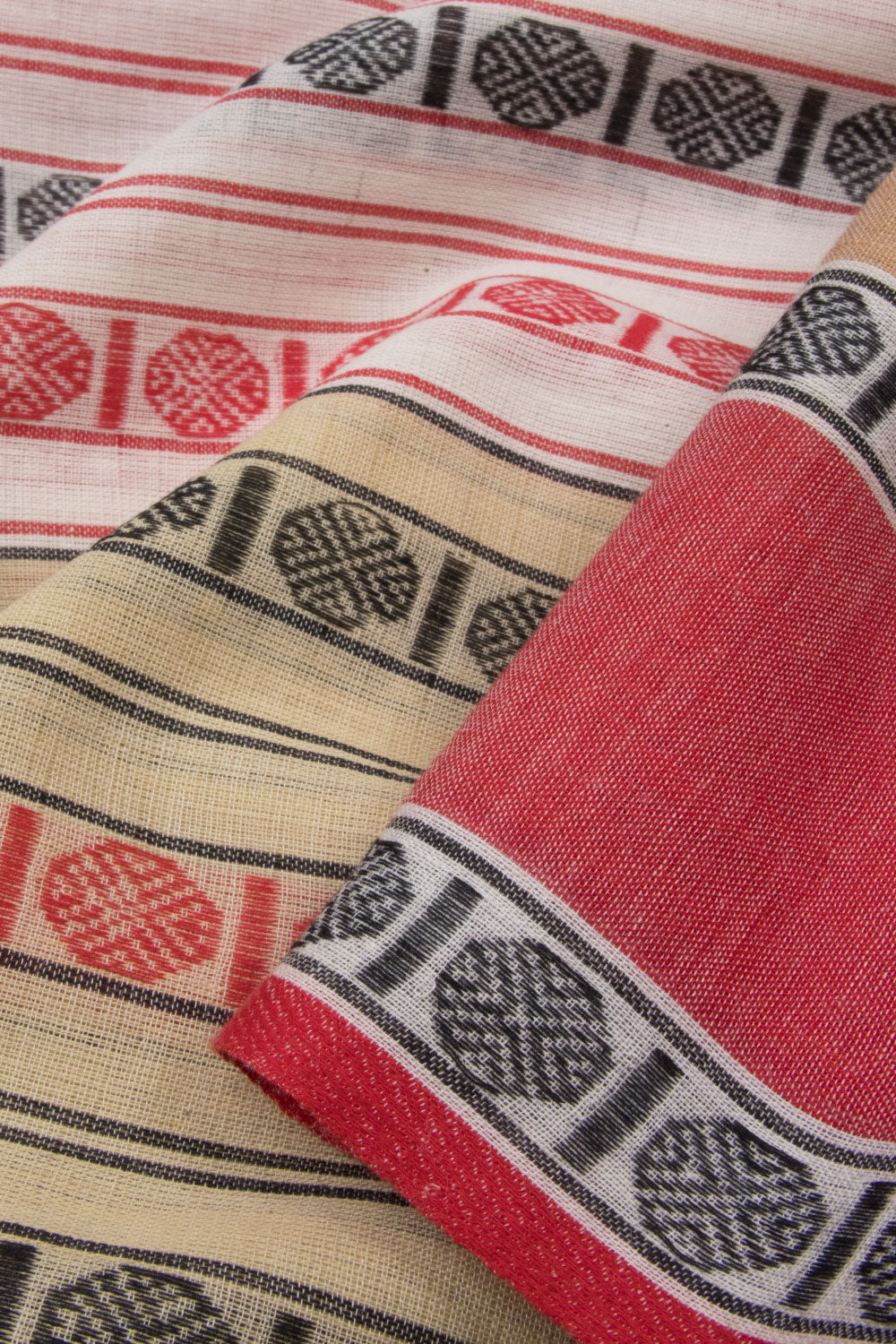 Cream With Red Handloom Dhaniakhali Cotton Saree 10063550