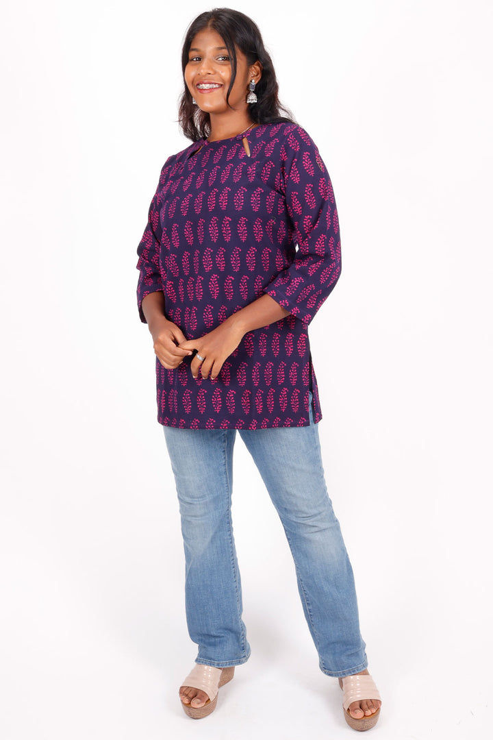 Experience vibrant elegance with this Blue Hand Block Printed Cotton Kurti. Crafted from breathable cotton, it offers comfort and style for everyday wear. The intricate hand block prints add a unique, artisanal touch, making it perfect for casual outings or festive occasions. Embrace tradition with a modern flair and elevate your wardrobe effortlessly.