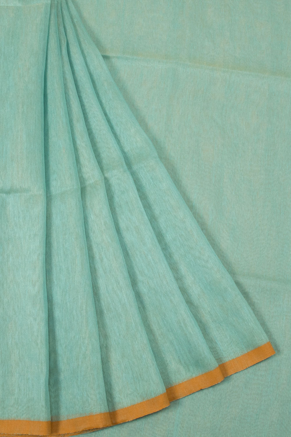 Teal Blue Handloom Bengal Linen Cotton Saree 10063728