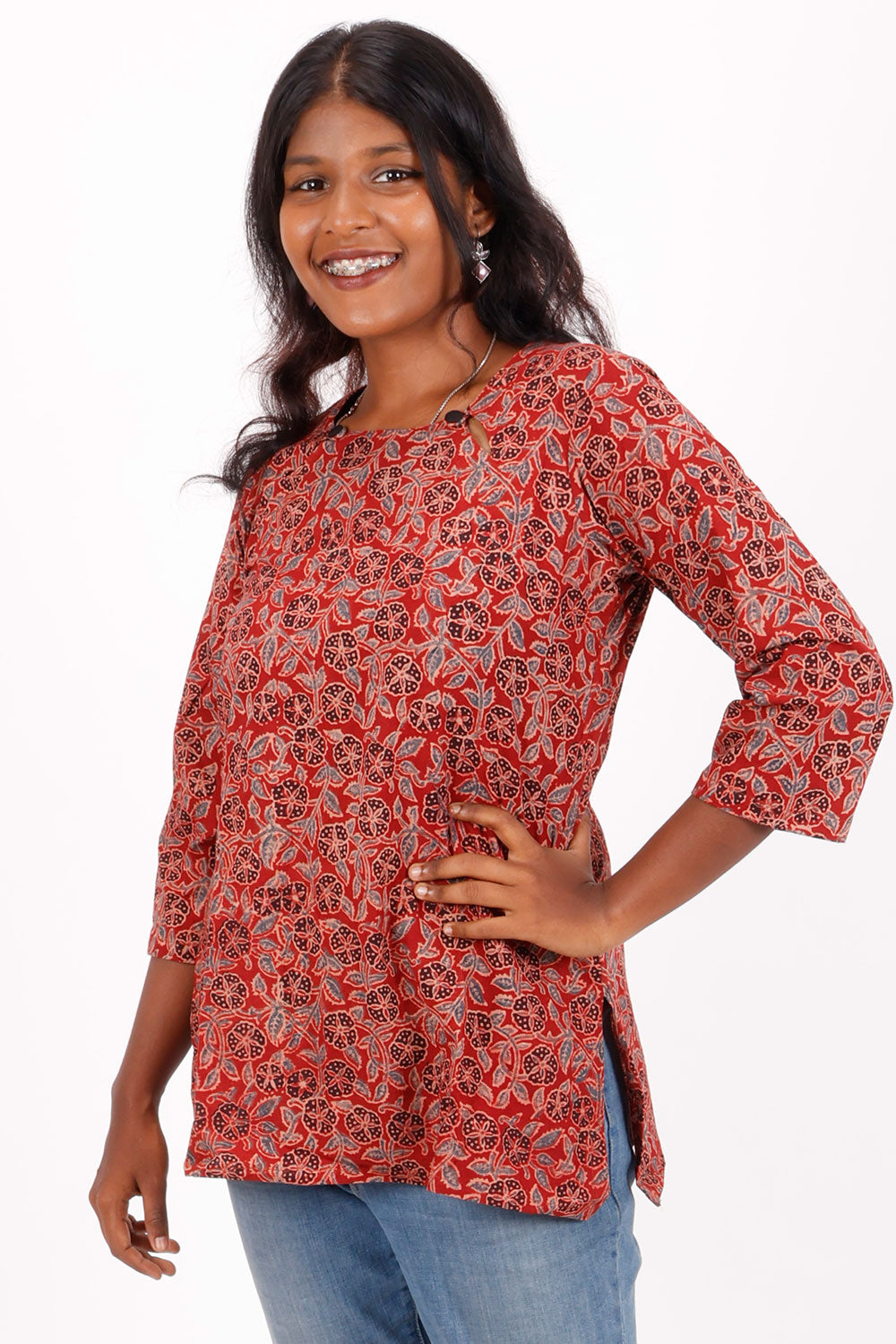 Tomato Red Ajrakh Printed Cotton Kurti 10072048