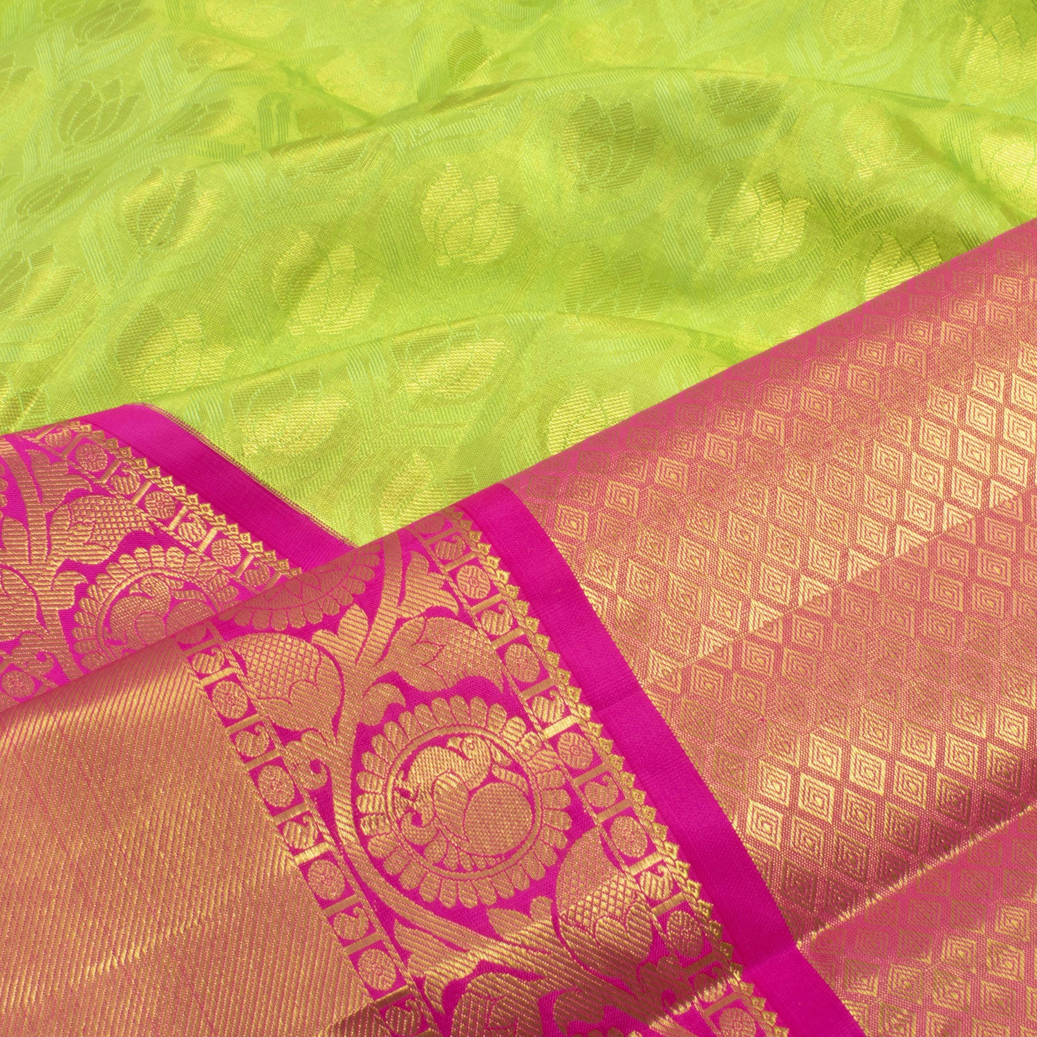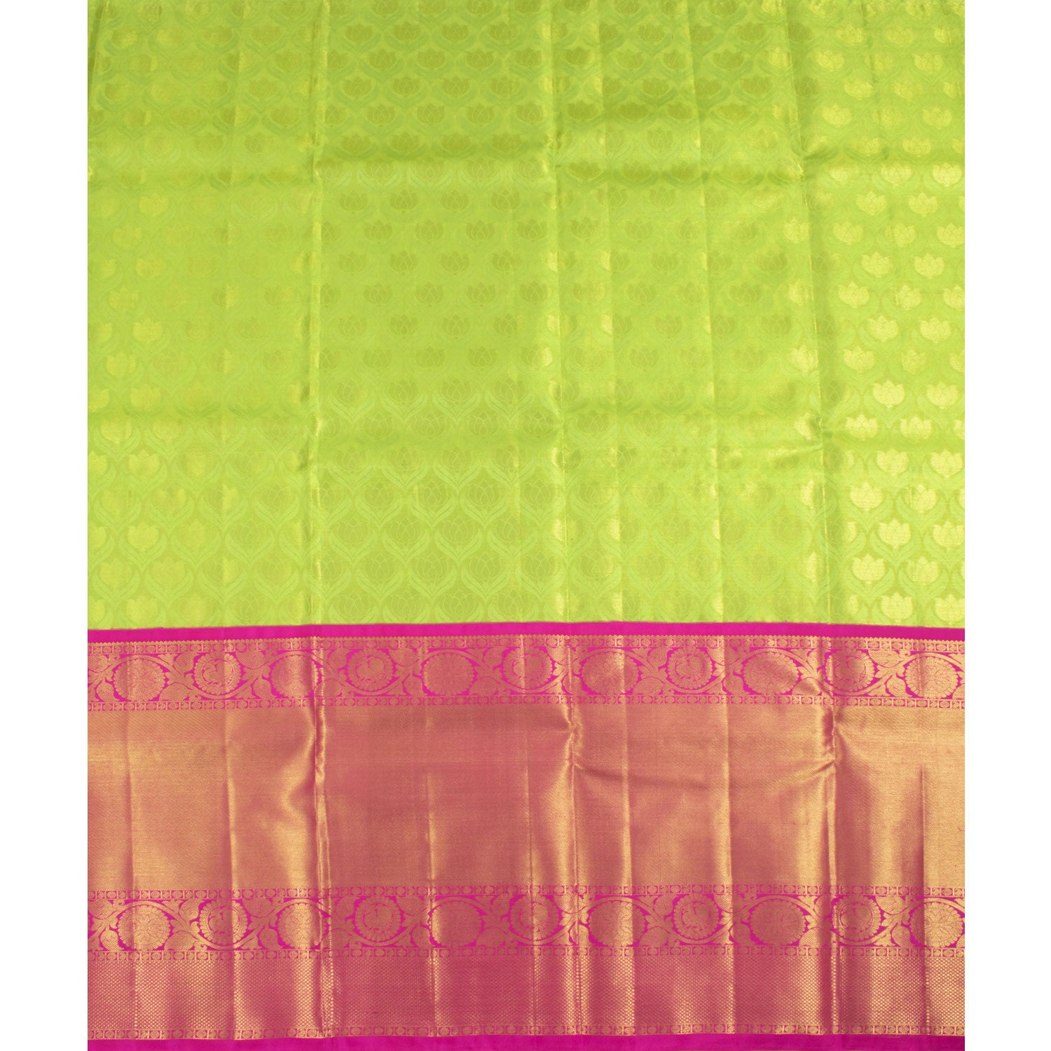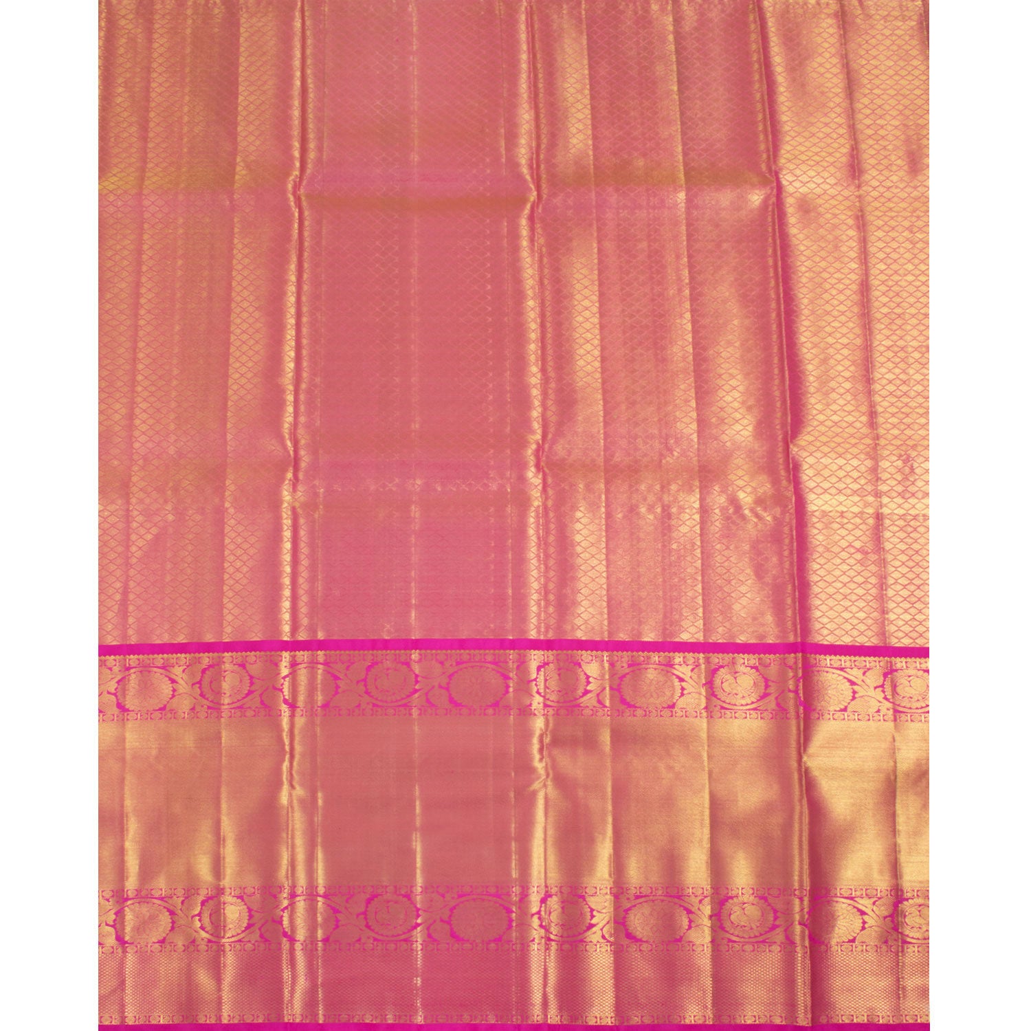 Universal Size Handwoven Pure Zari Korvai Kanjivaram Tissue Silk Pattu Pavadai Material with Floral Motif and Bavanji Mayil Chakram Border 10055457