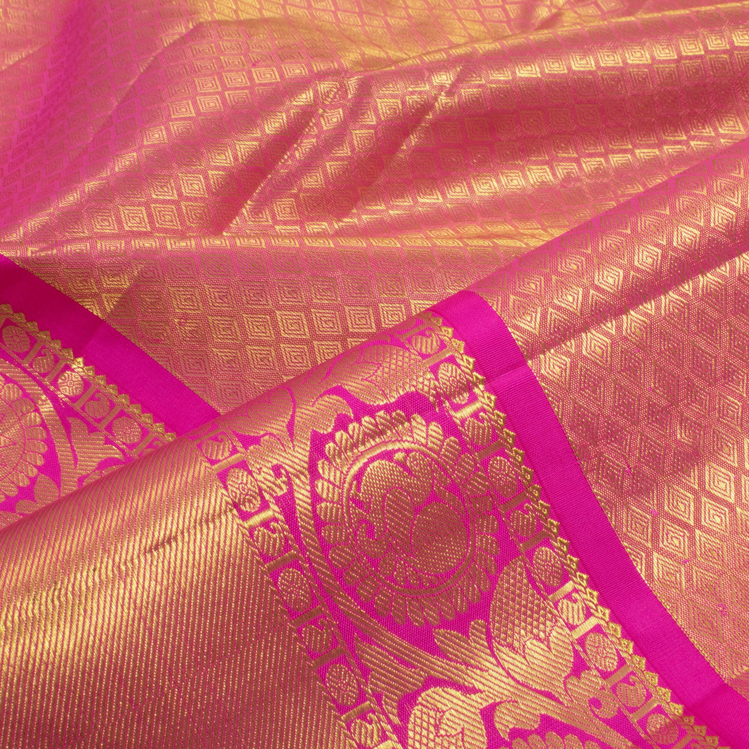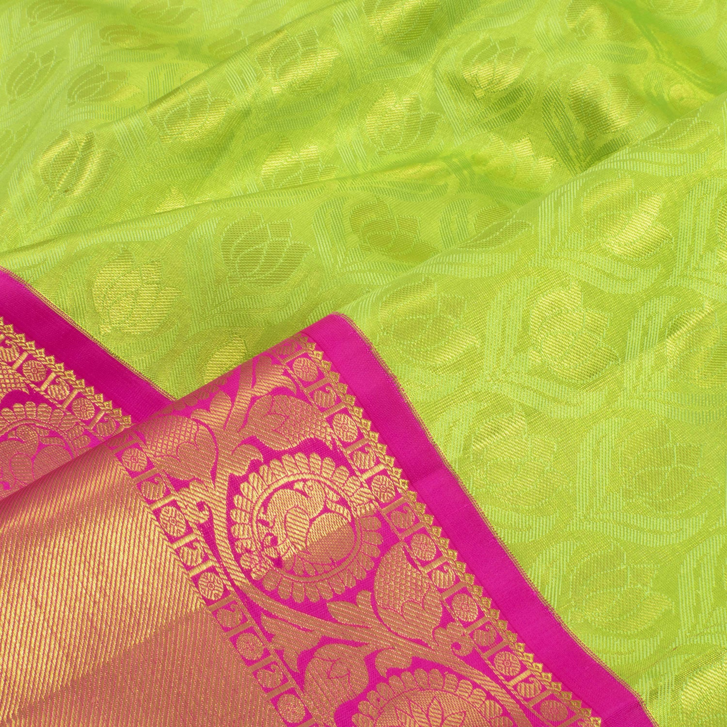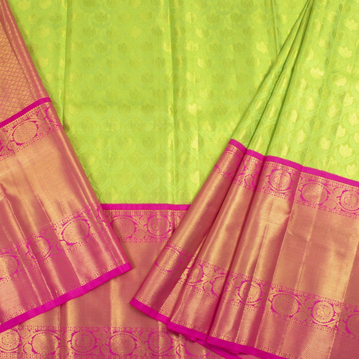 Universal Size Handwoven Pure Zari Korvai Kanjivaram Tissue Silk Pattu Pavadai Material with Floral Motif and Bavanji Mayil Chakram Border 10055457