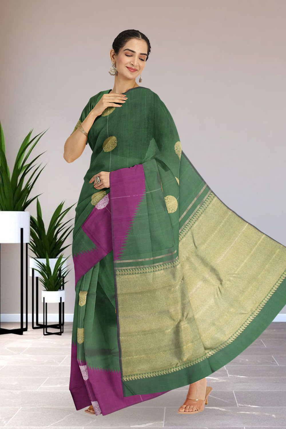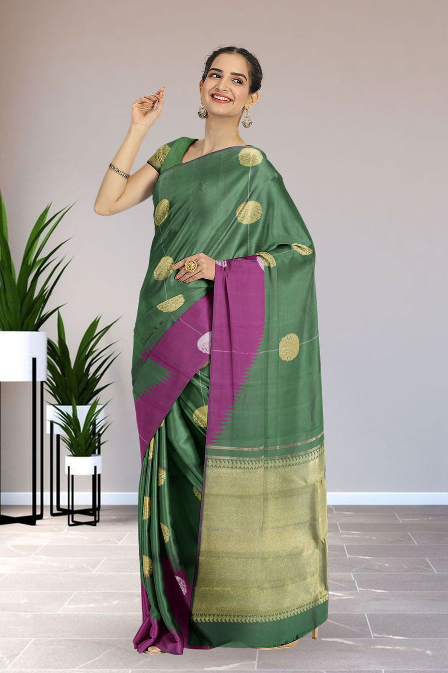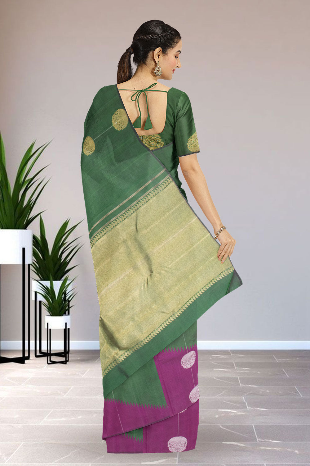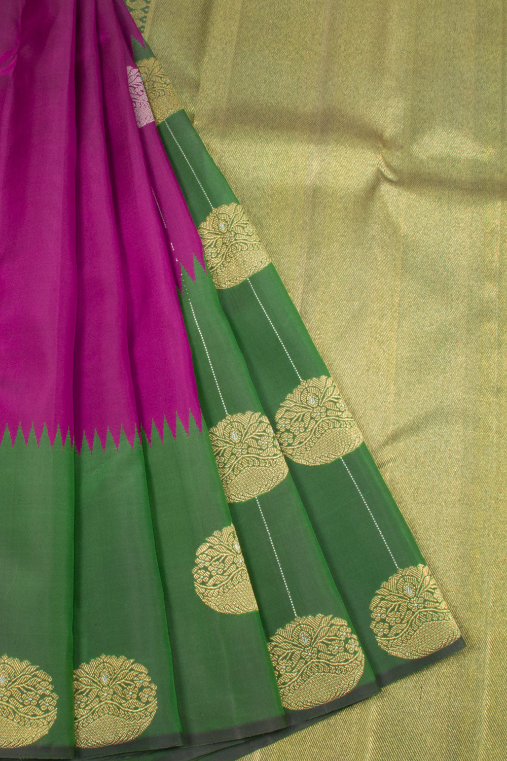Violet and Green Pure Zari Rising Border Kanjivaram Silk Saree 10063124