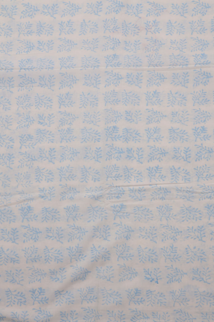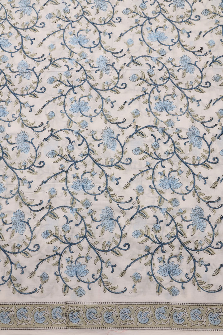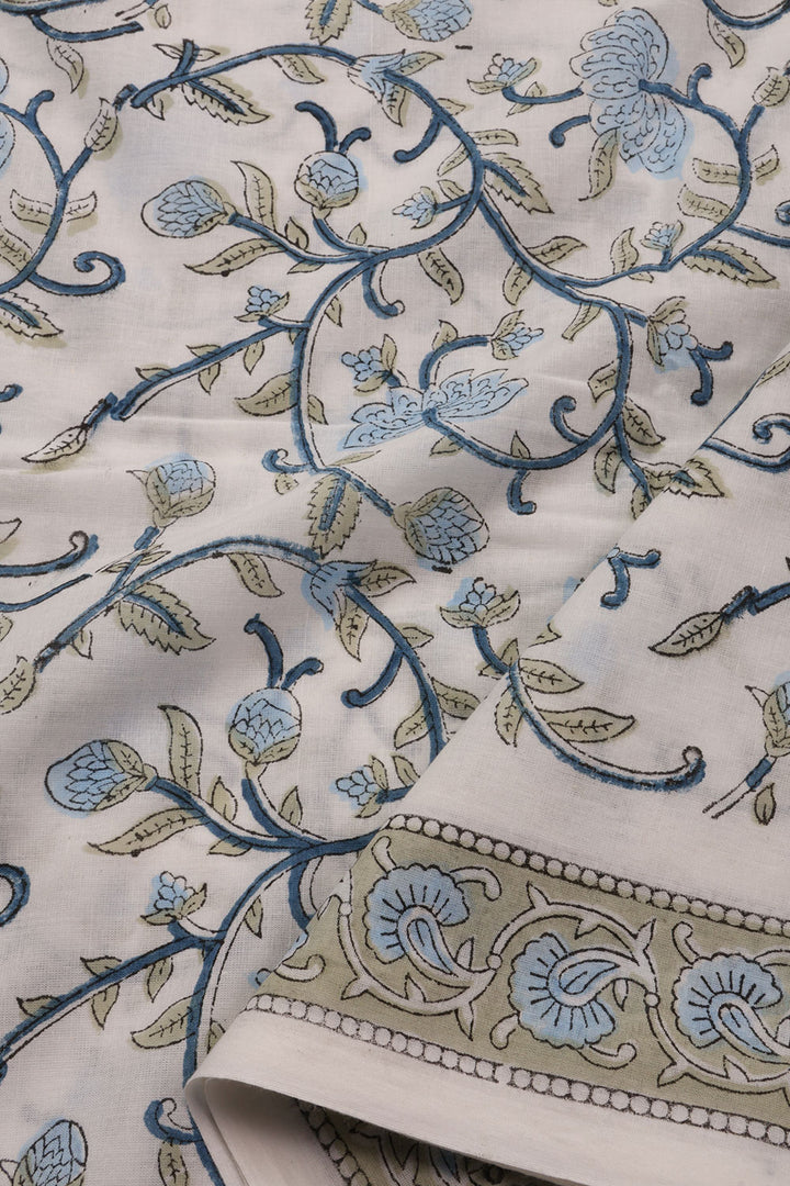 White Handblock Printed Cotton with Chiffon Dupatta 3-Piece Salwar Suit Material 10072959