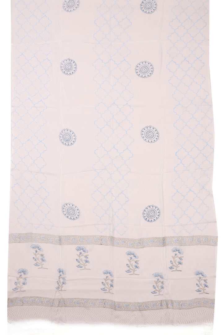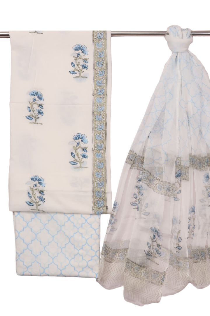 White Handblock Printed Cotton with Chiffon Dupatta 3-Piece Salwar Suit Material 10072966