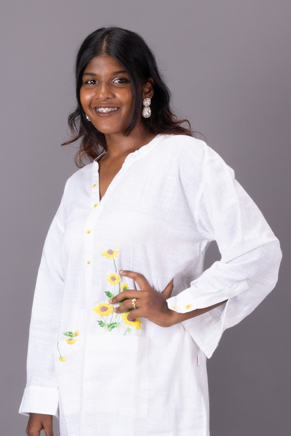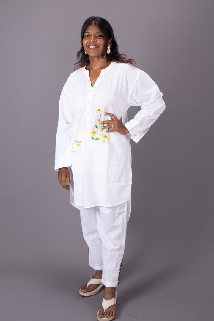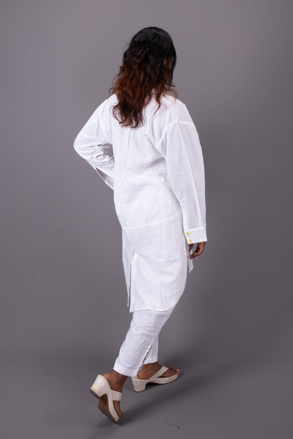 Elevate your wardrobe with our handcrafted White Cotton Co-ord Set! Made from 100% cotton, this set is perfect for any occasion. With its unique handcrafted design, you'll stand out in style while also feeling comfortable and confident. Upgrade your style game today!