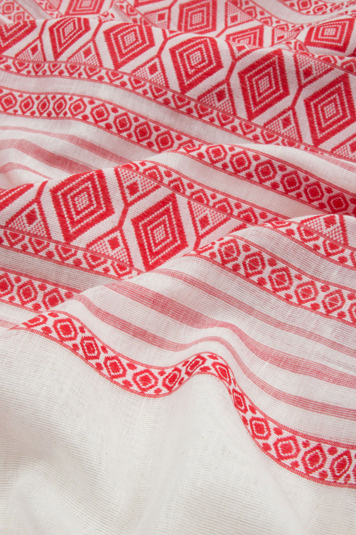 White Handloom Dhaniakhali Cotton Saree 10062571