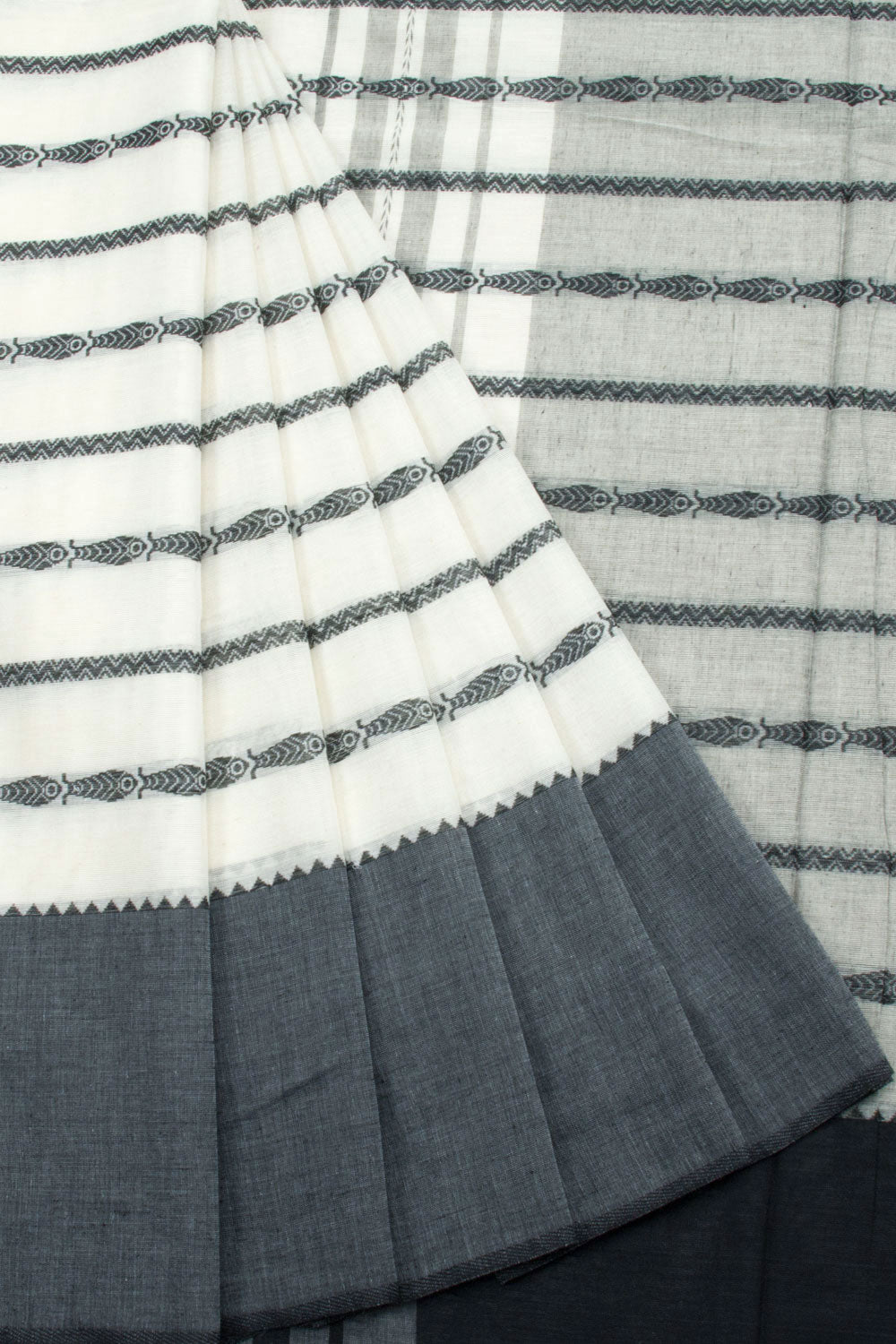 White Handloom Dhaniakhali Cotton Saree 10062604