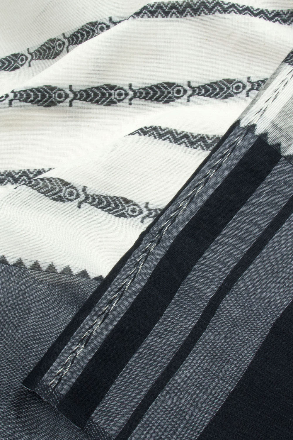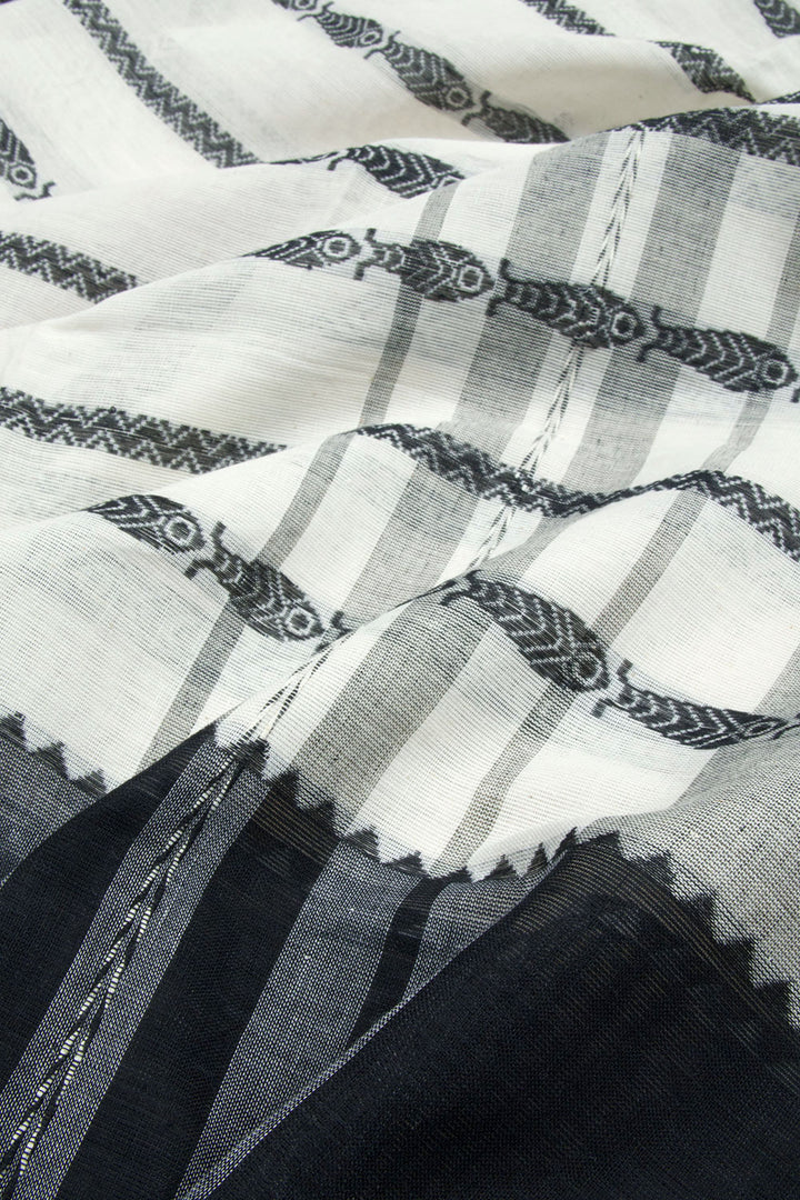White Handloom Dhaniakhali Cotton Saree with fish design all over the body Created using traditional techniques, this saree ensures superior quality, comfort, and durability for a timeless look.