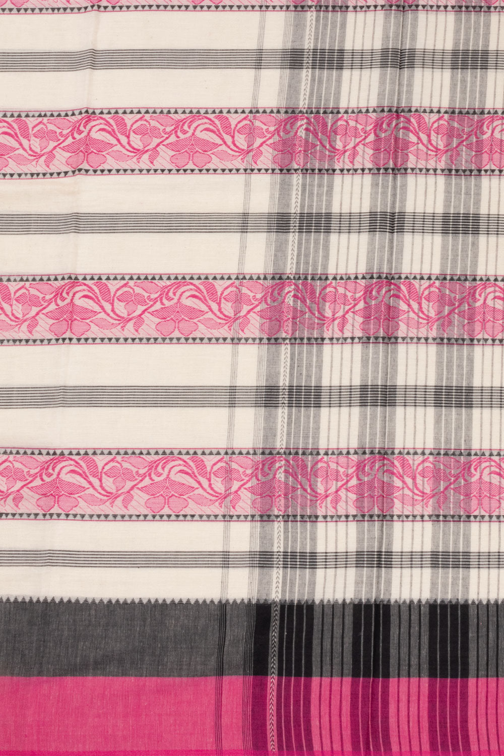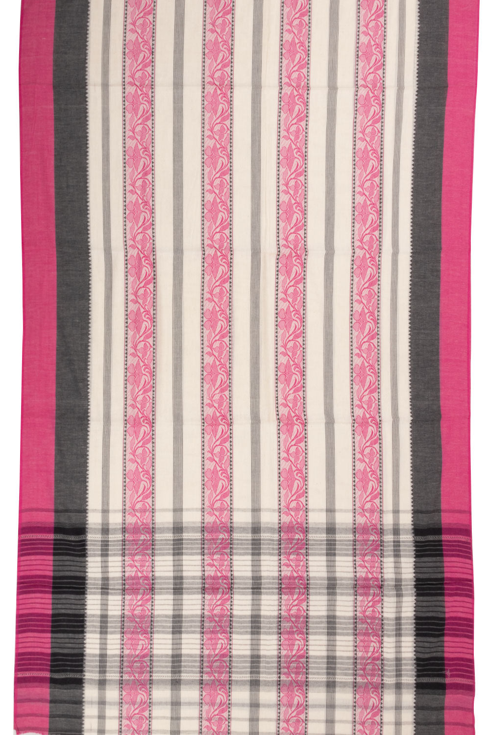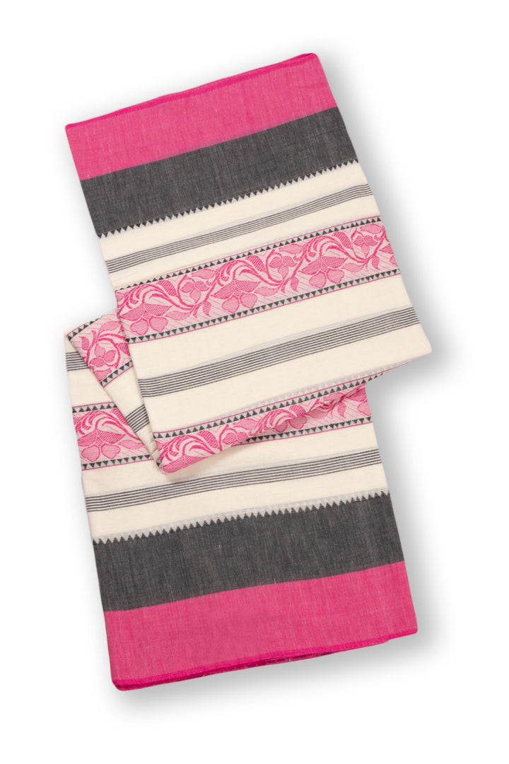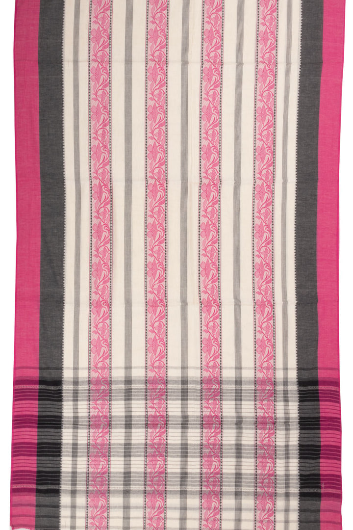 White Handloom Dhaniakhali Cotton Saree Without Blouse 10073020