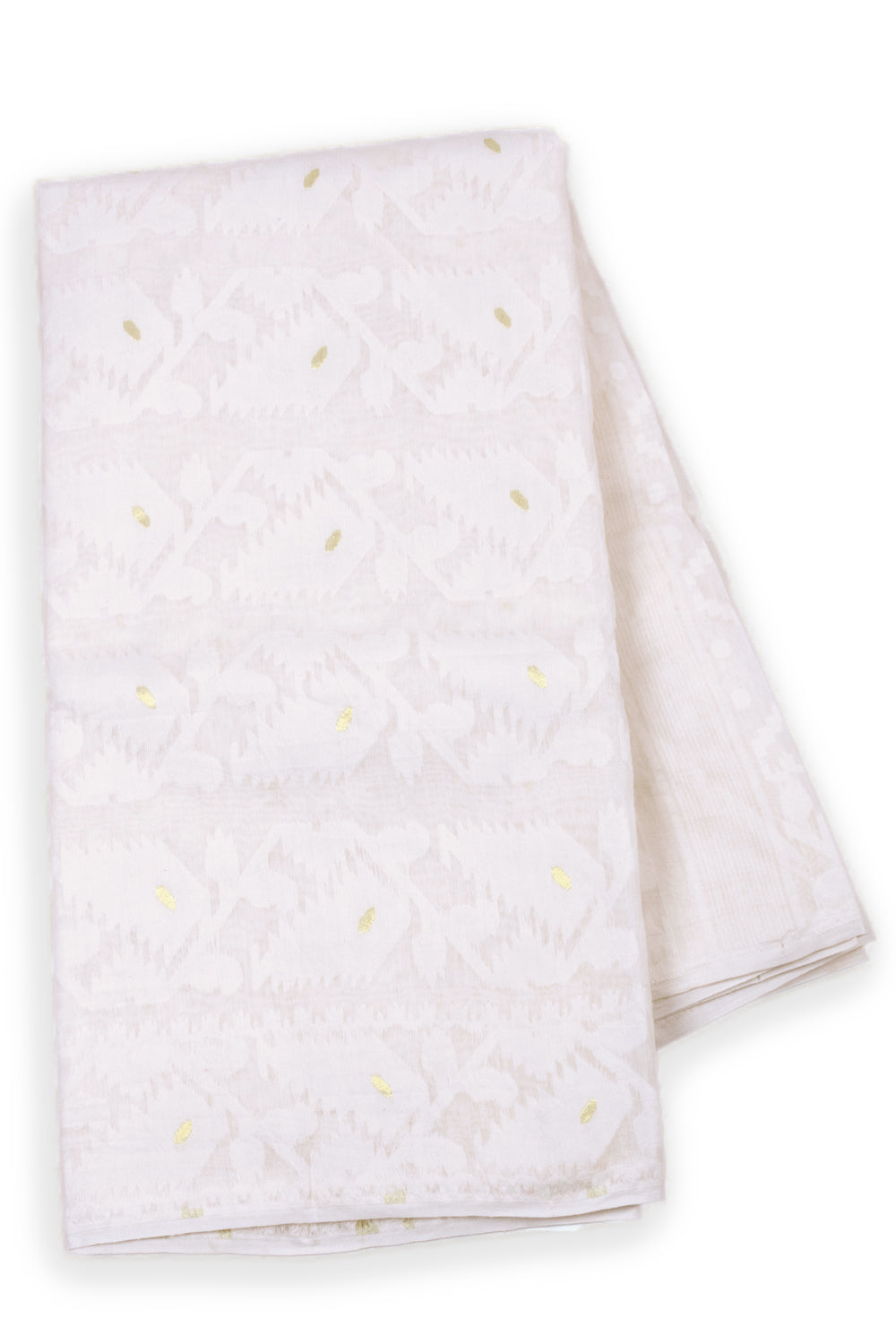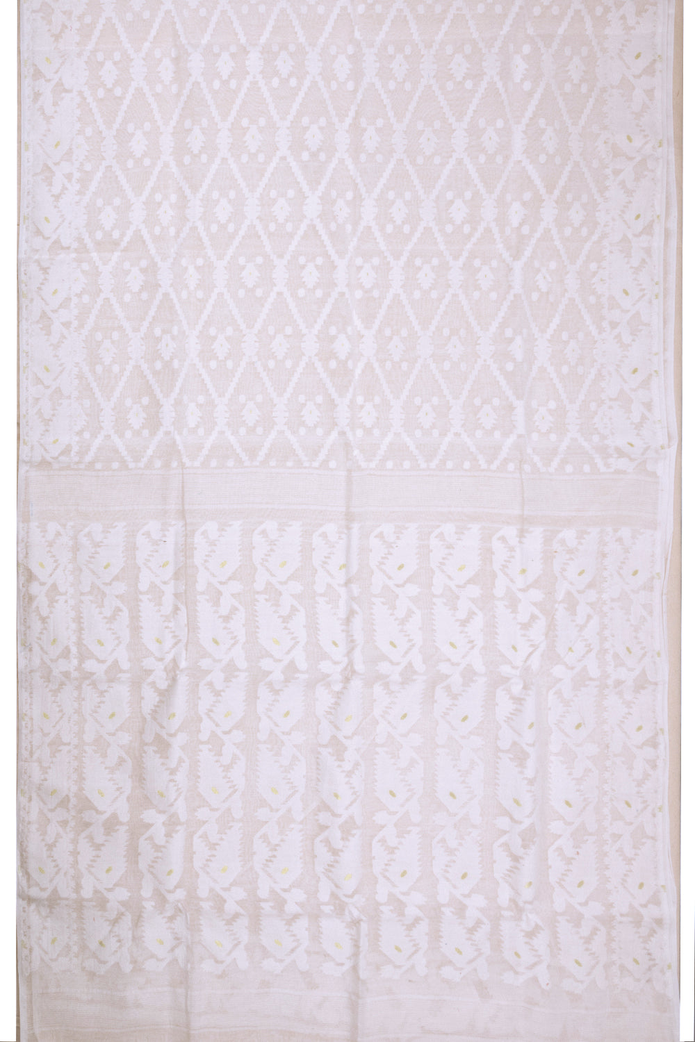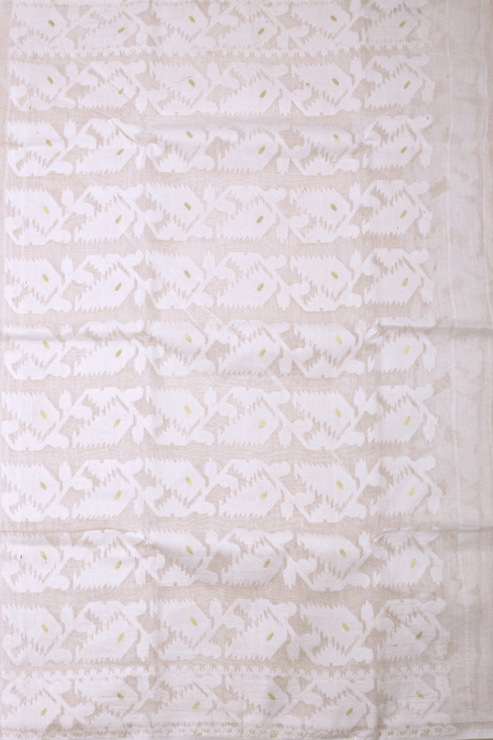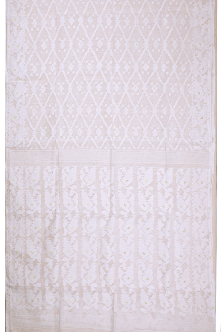 White Handloom Jamdani Style Cotton Saree with Blouse 10074215
