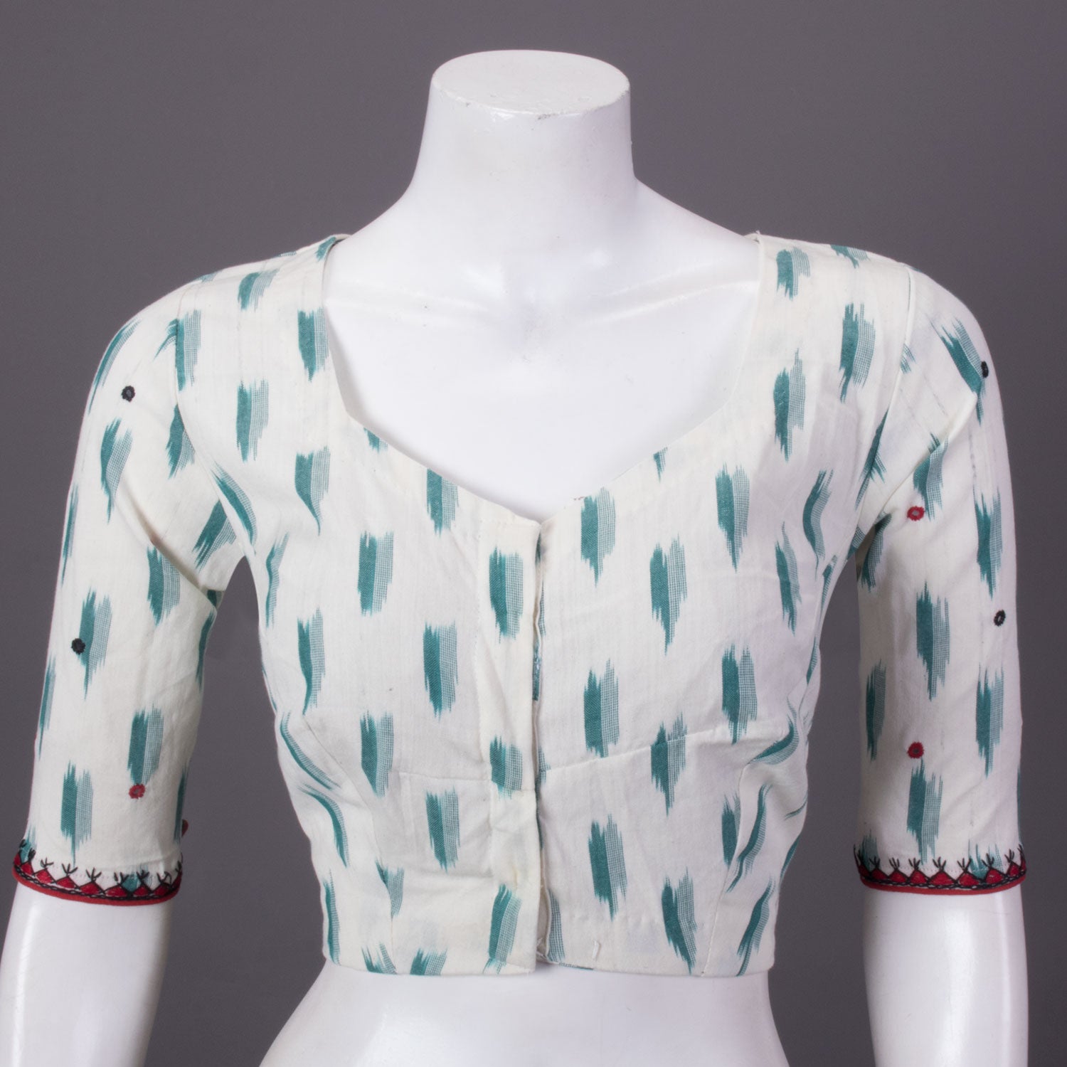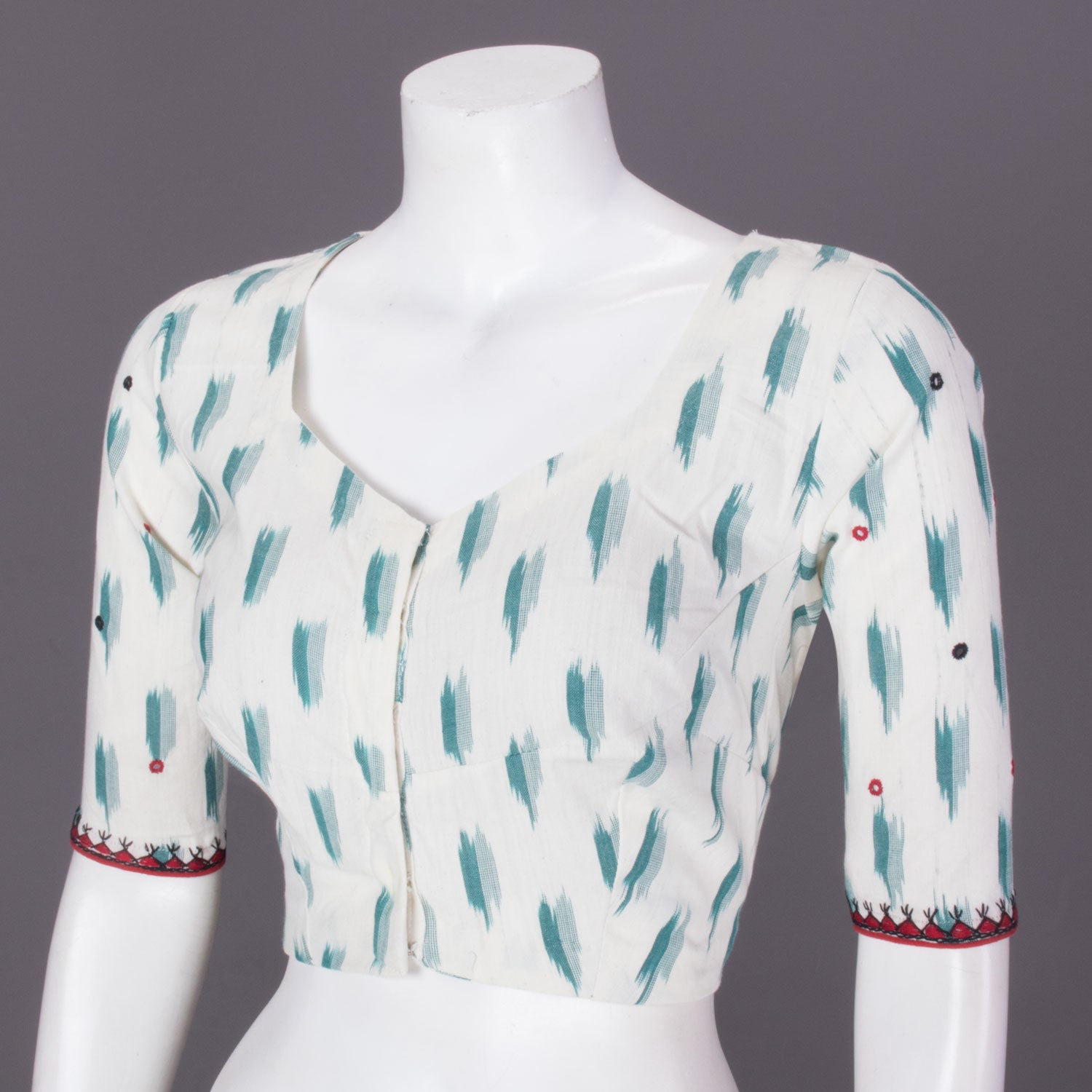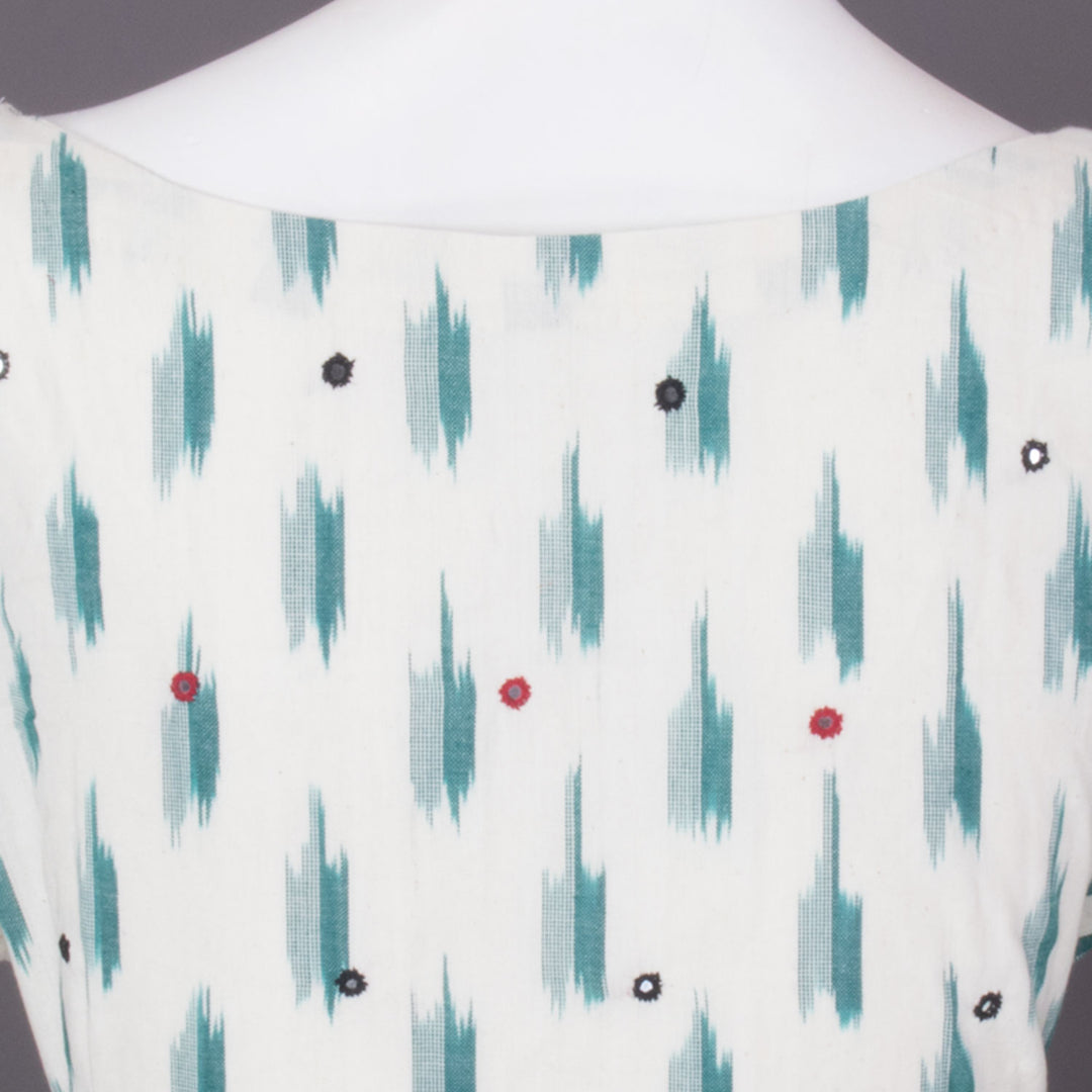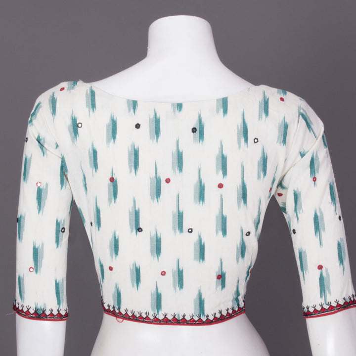 White Mirror Work Pochampally Ikat Cotton Blouse 10073398