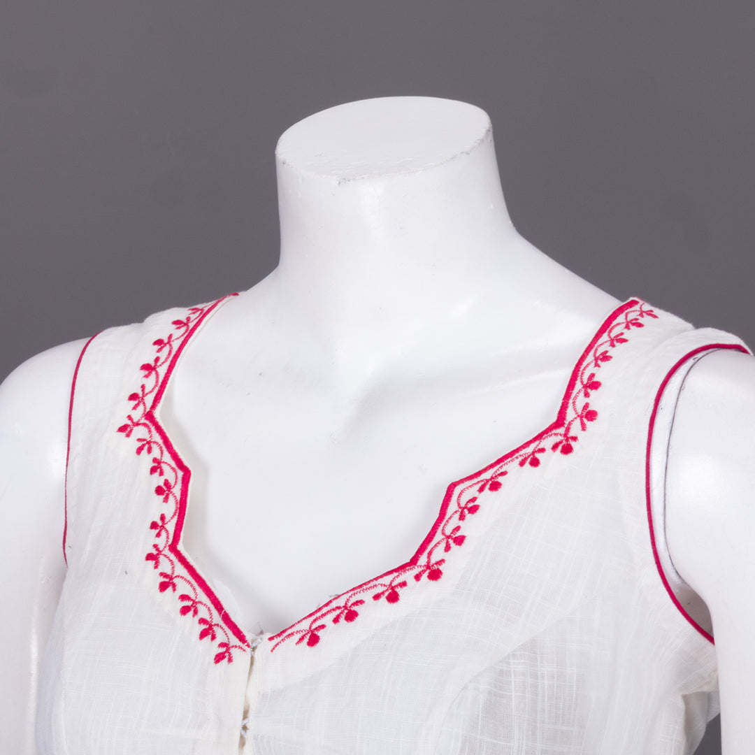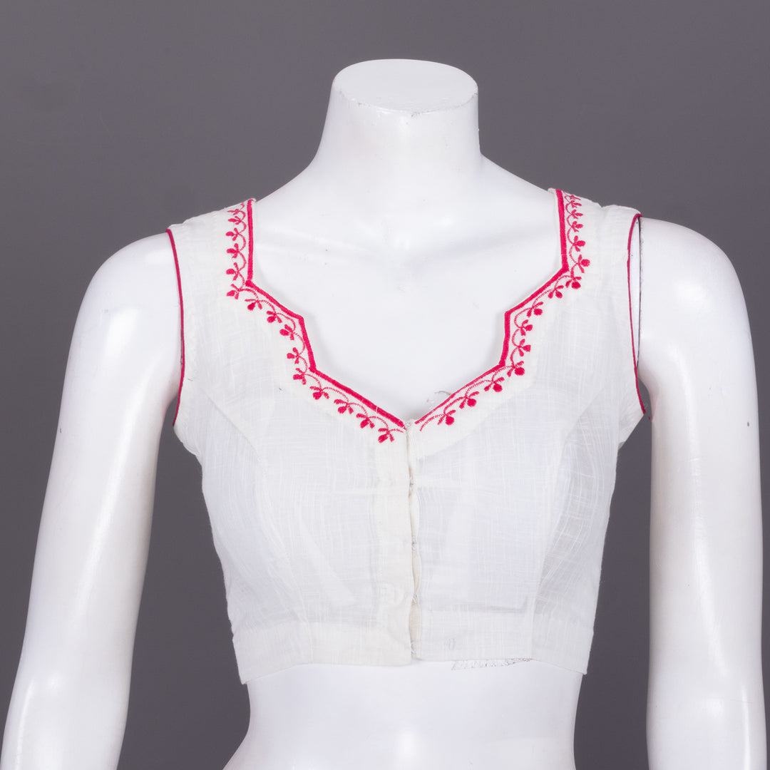 White Slub Cotton Embroidered Blouse 10072484