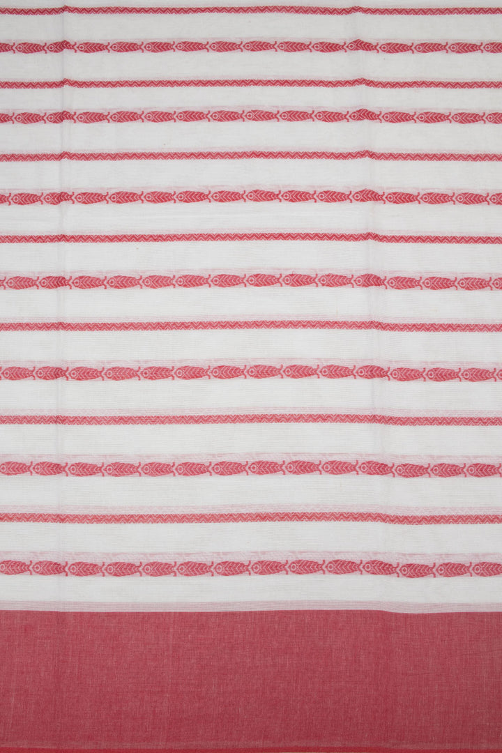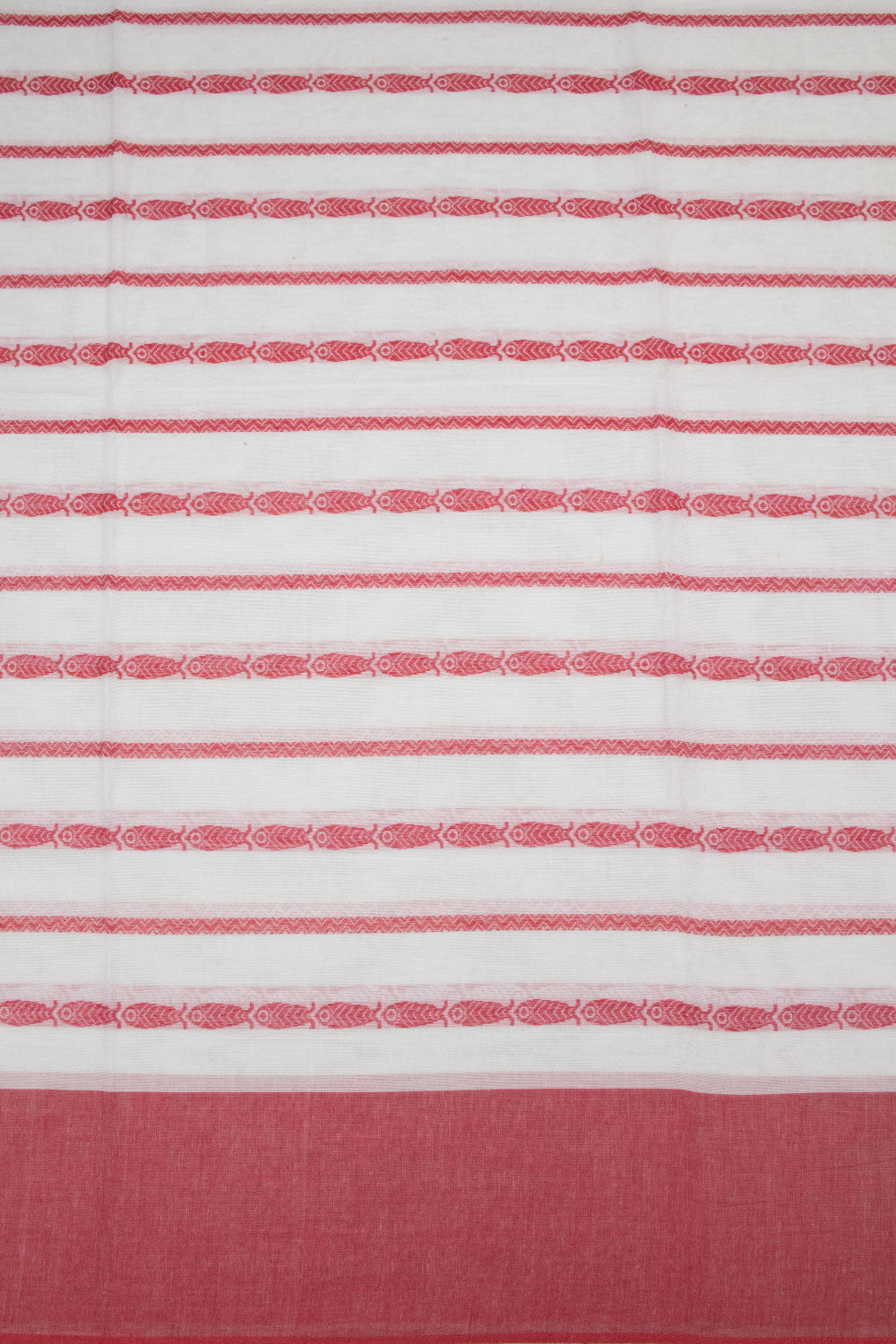 White With Red Handloom Dhaniakhali Cotton Saree 10063549