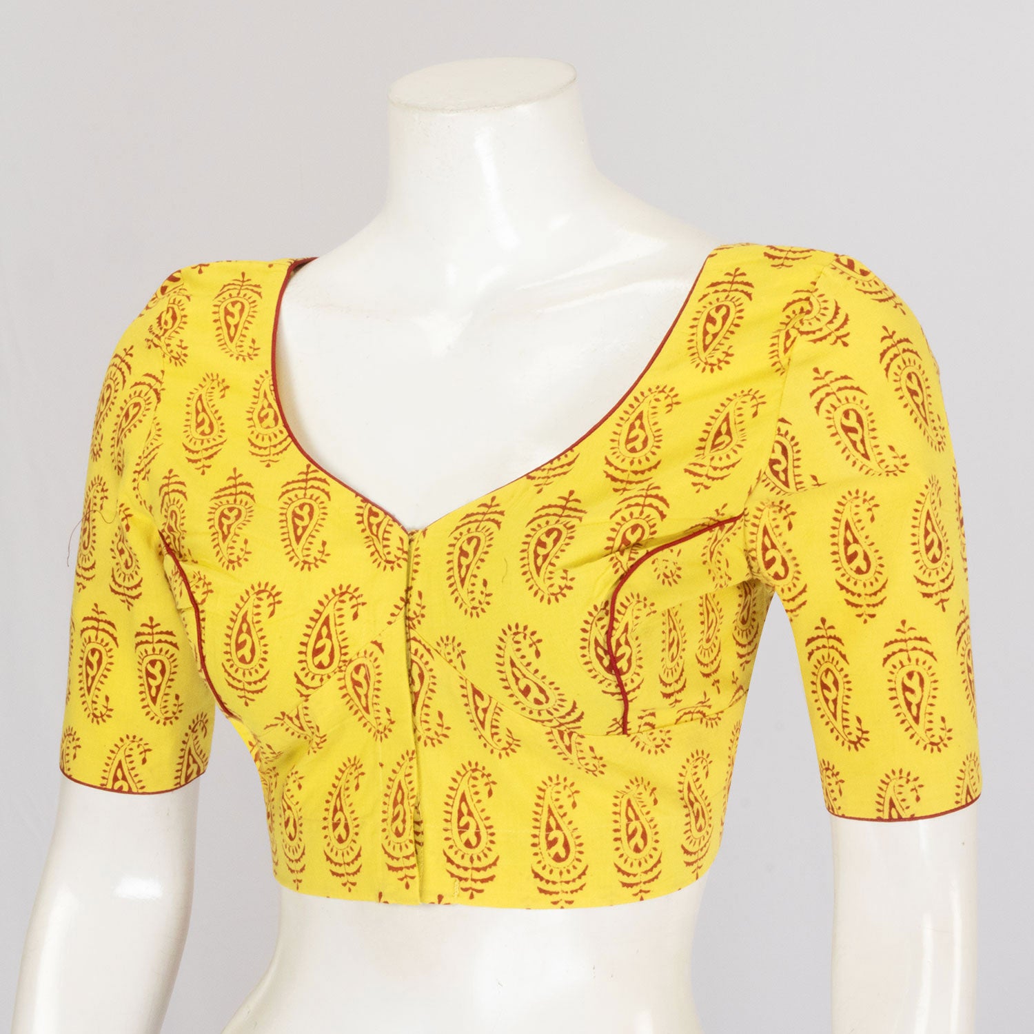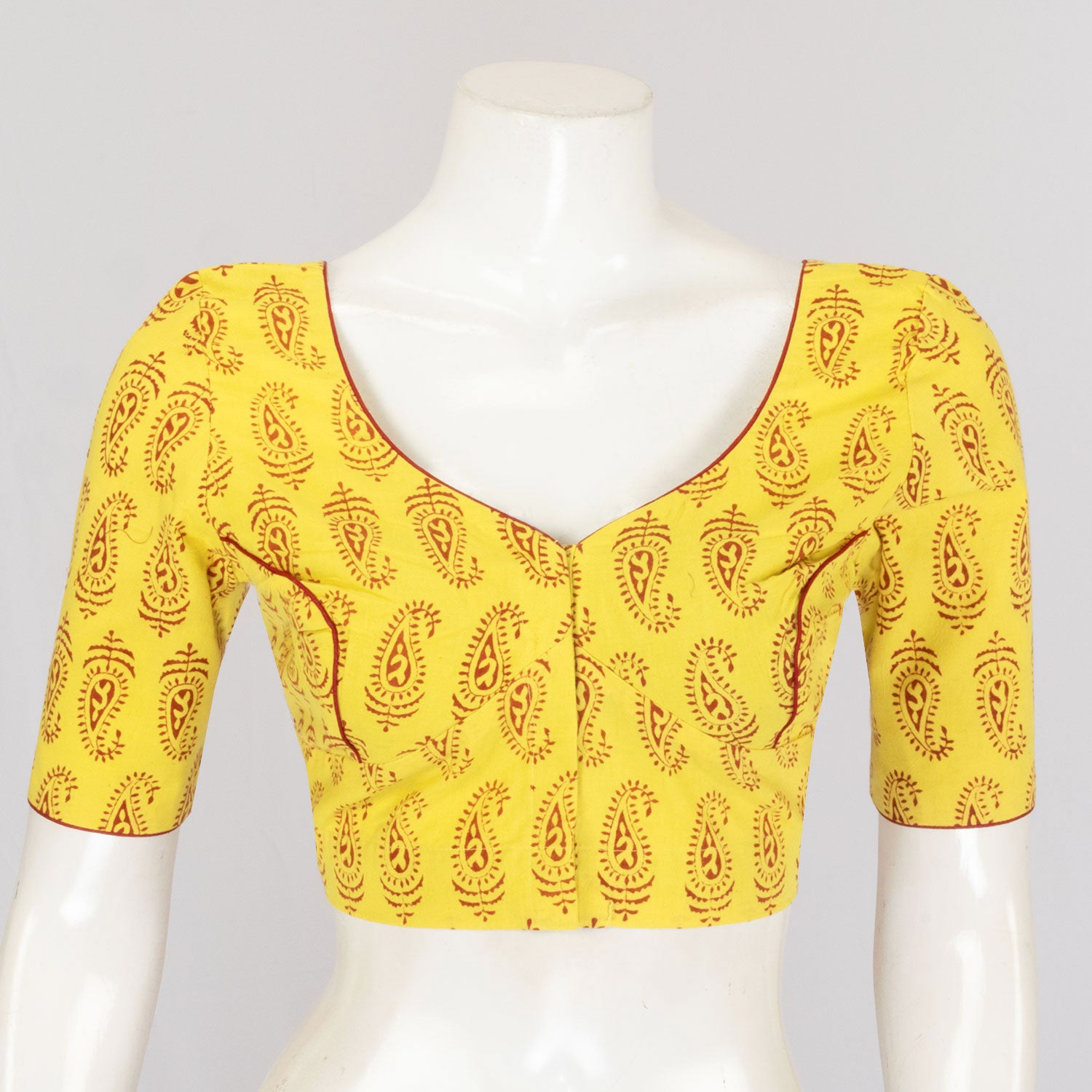 Yellow Hand Block Printed Cotton Blouse 10064594