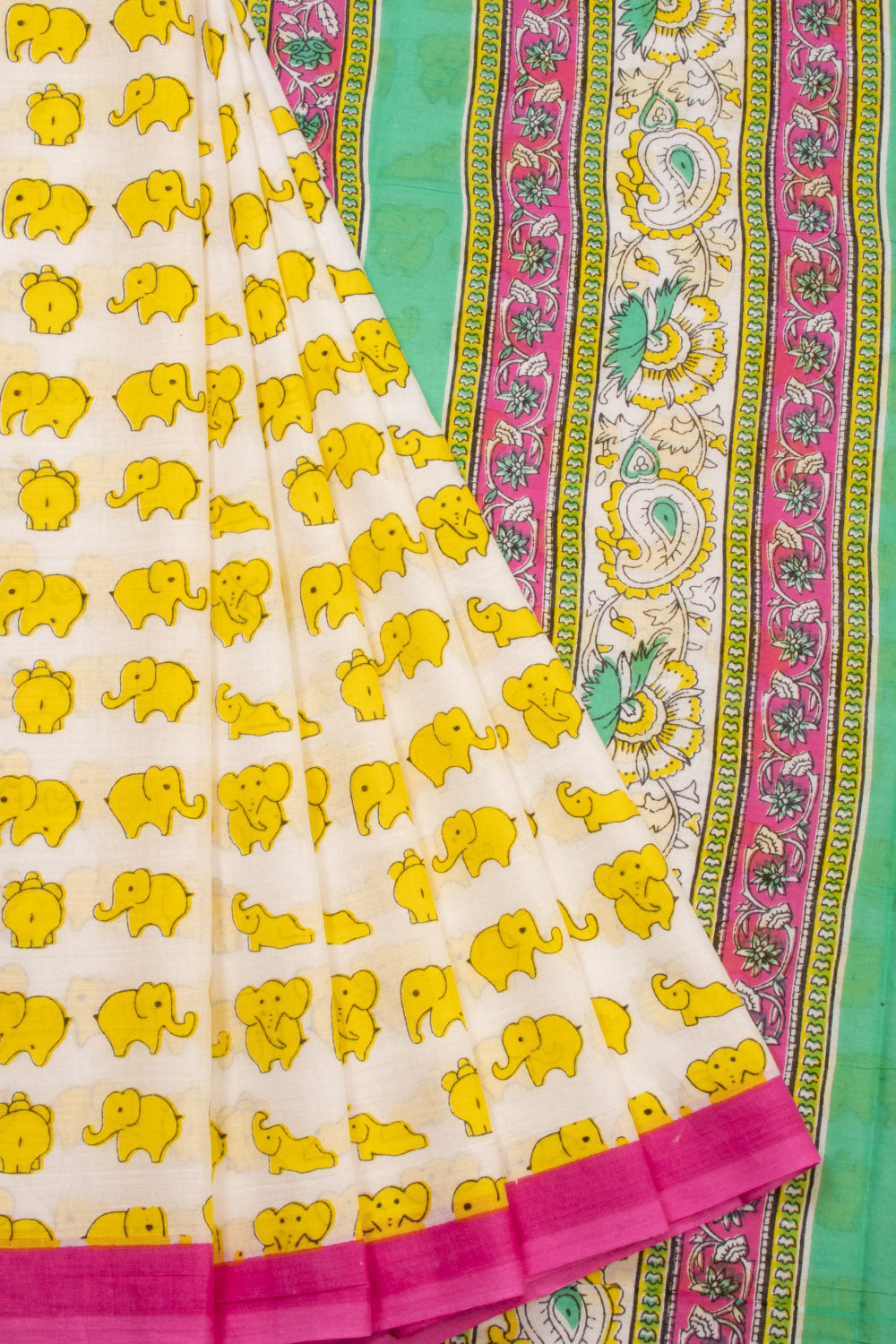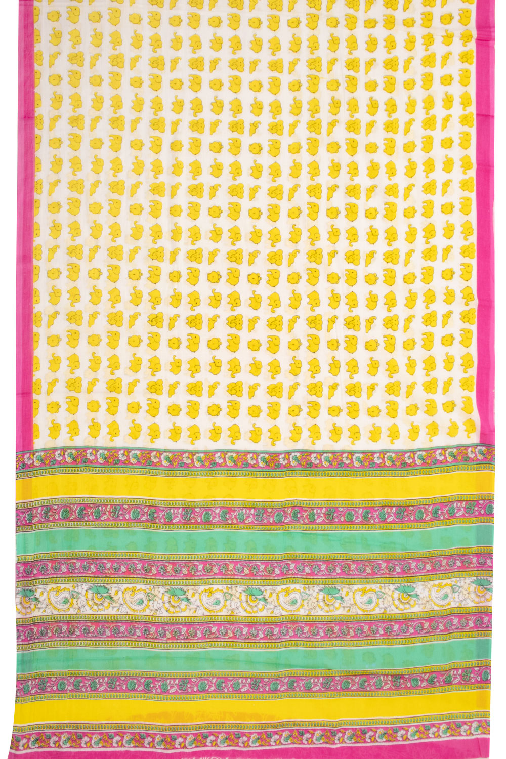 Indulge in the captivating charm of the Yellow Hand Block Printed Cotton Saree. Adorned with detailed fish designs, this saree exudes elegance and feminine allure. For a chic and irresistible ensemble, pair it with the coordinating Printed  Blouse. Elevate your fashion game with this essential saree and leave a lasting impression everywhere you go.