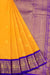 This Stunning Mango Yellow Korvai Kanjivaram Silk Saree features exquisite Mayil Chakaram Motifs throughout the body. The contrasting dark violet saree showcases graceful peacock motifs, while the Pallu is adorned with regal elephant and diamond motifs. Complete with a contrasting blouse, this saree is truly a masterpiece.