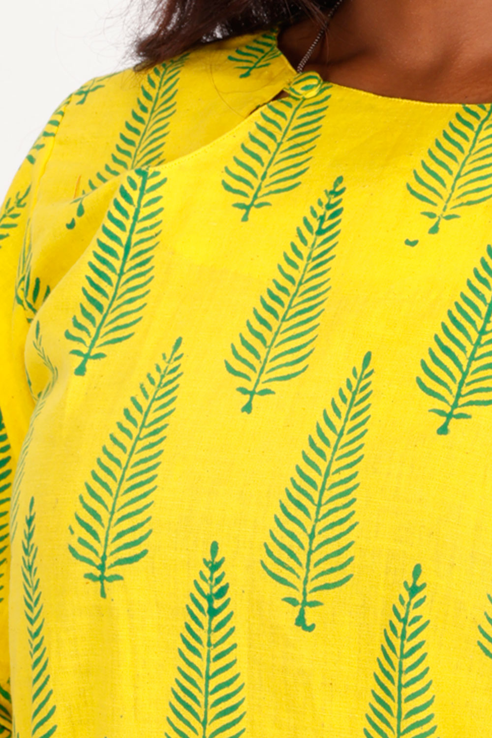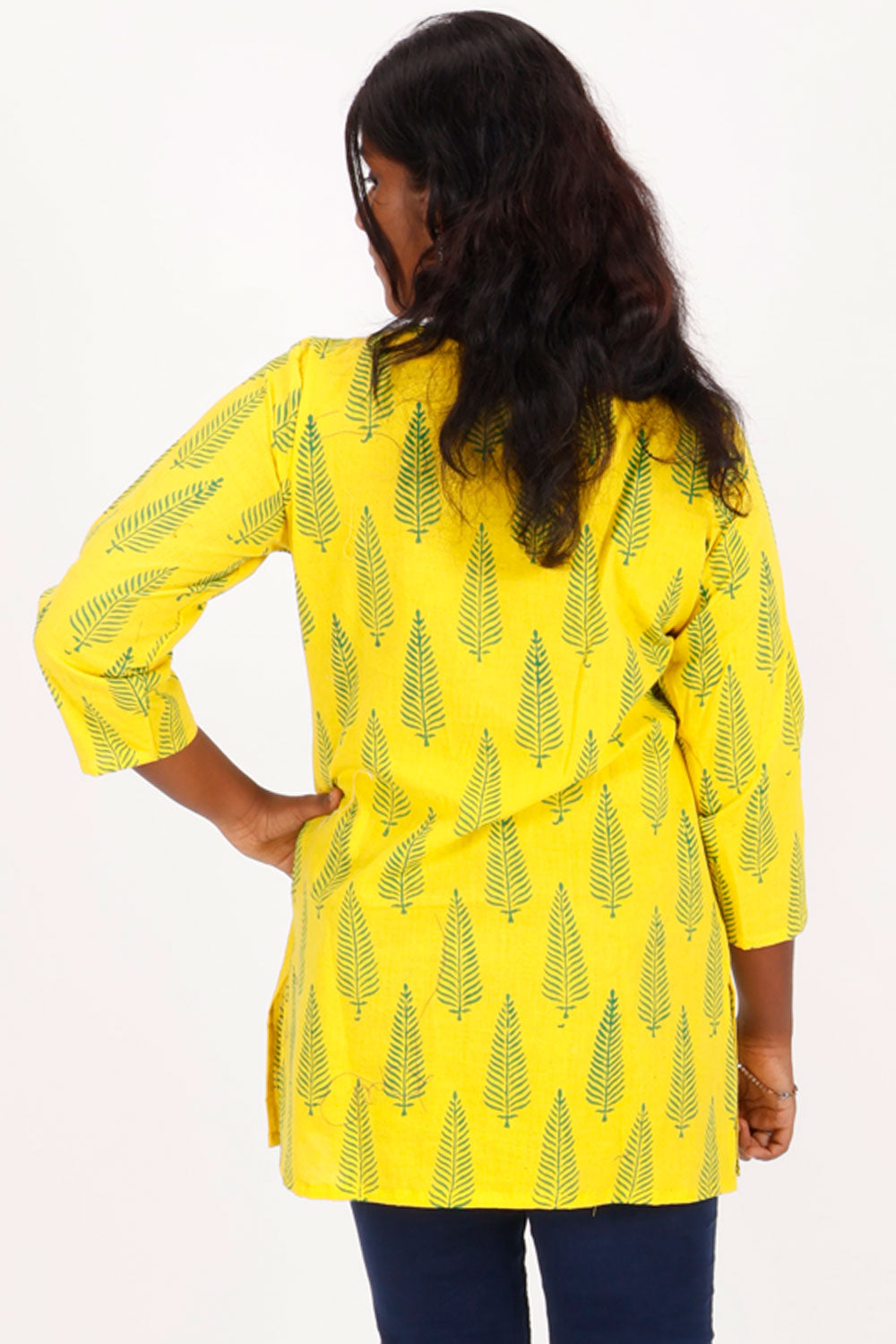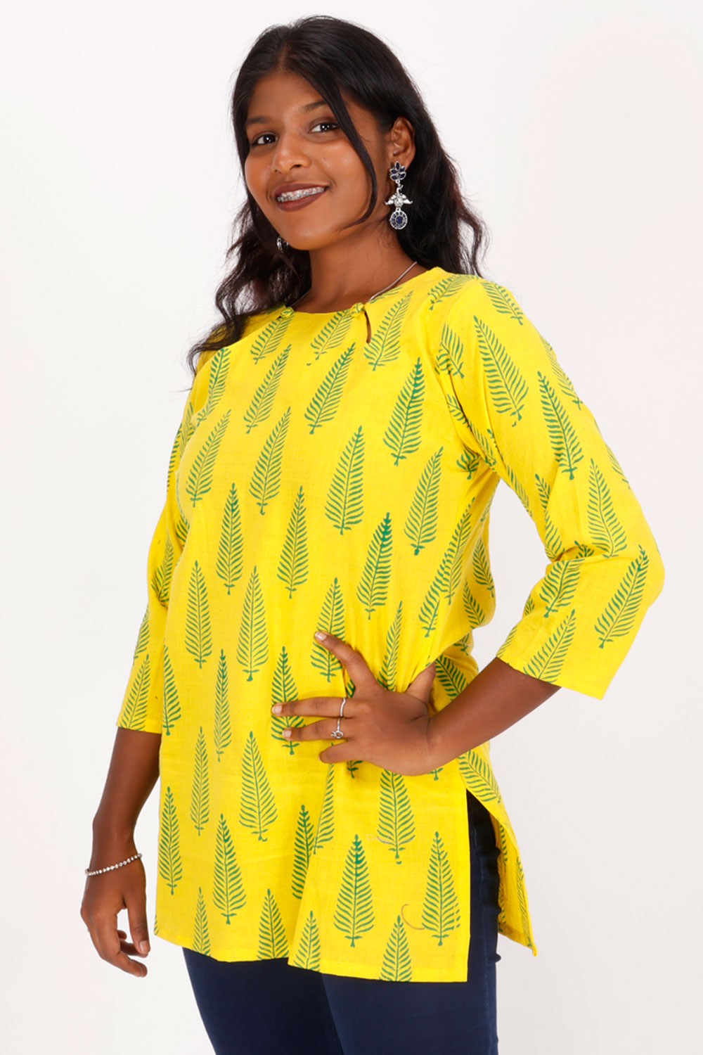 Yellow Rose Hand Block Printed Cotton Kurti 10071556